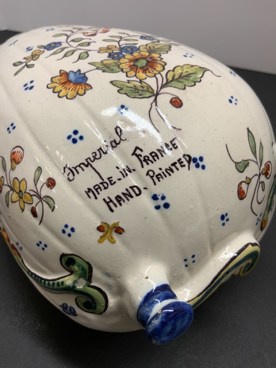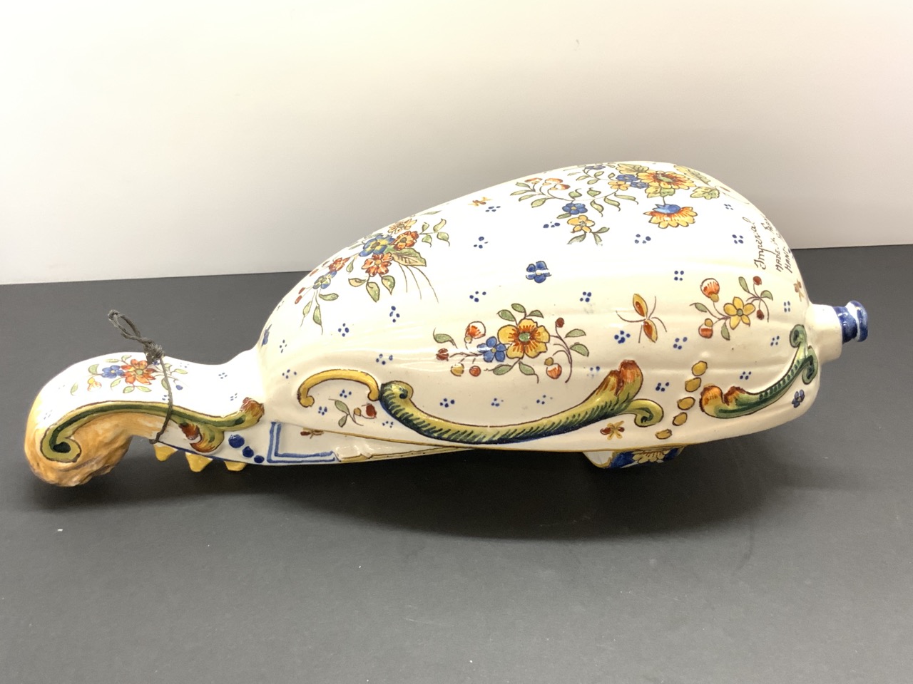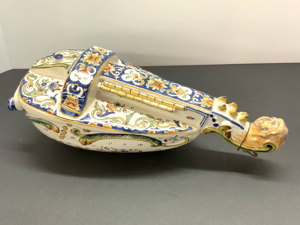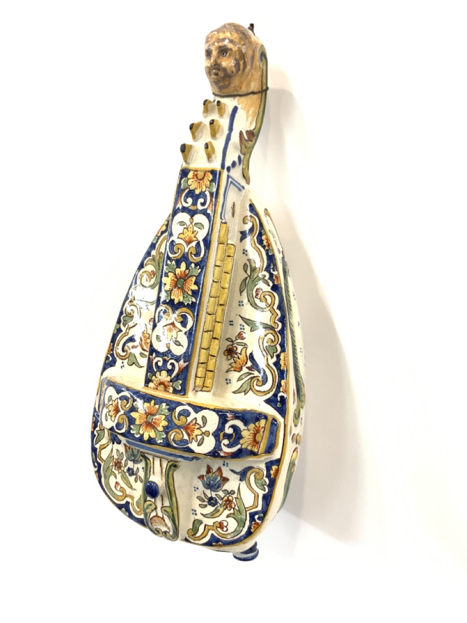 French Faience Pottery Wall Pocket in the form of a mandolin.
