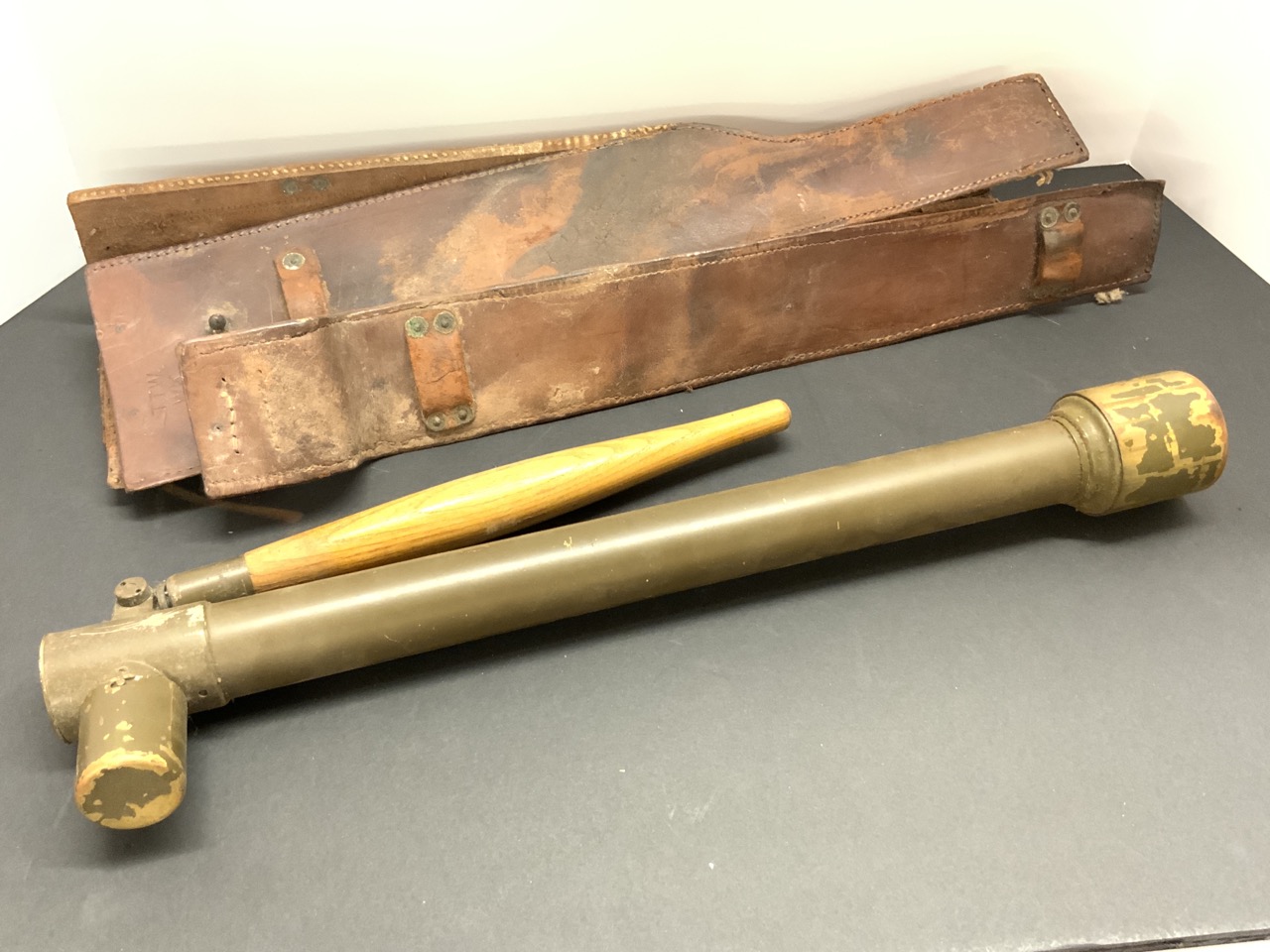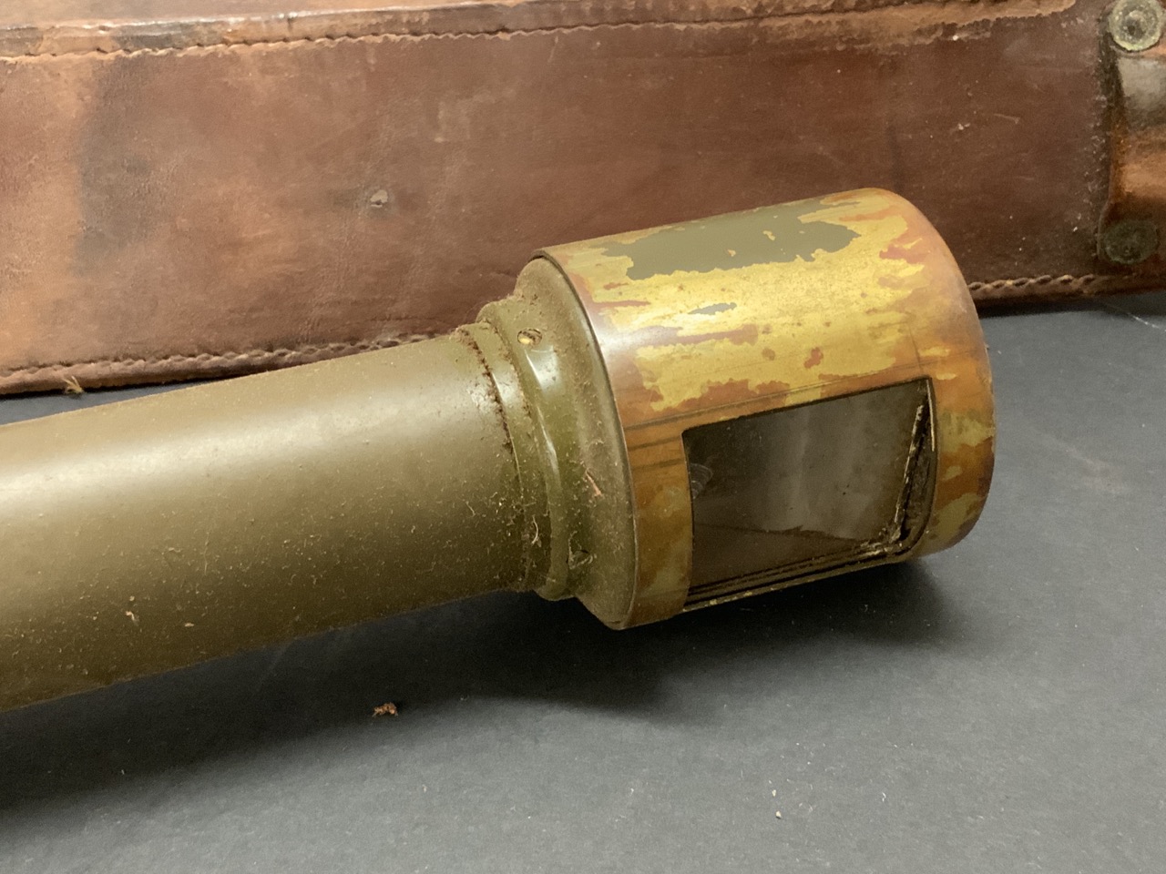 A rare WWI Trench Periscope housed in leather case. Case is coming apart at seams.