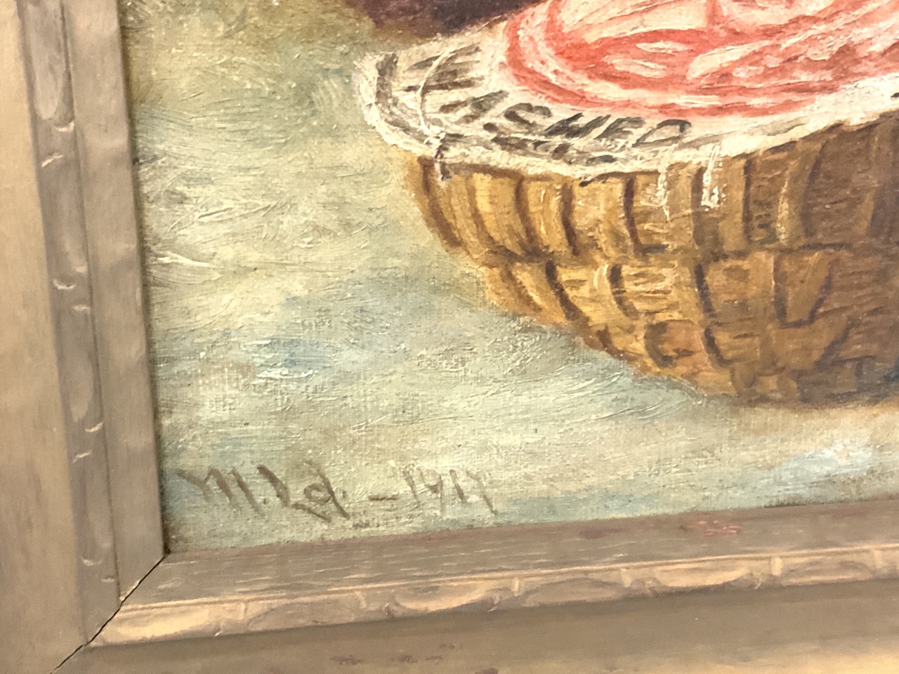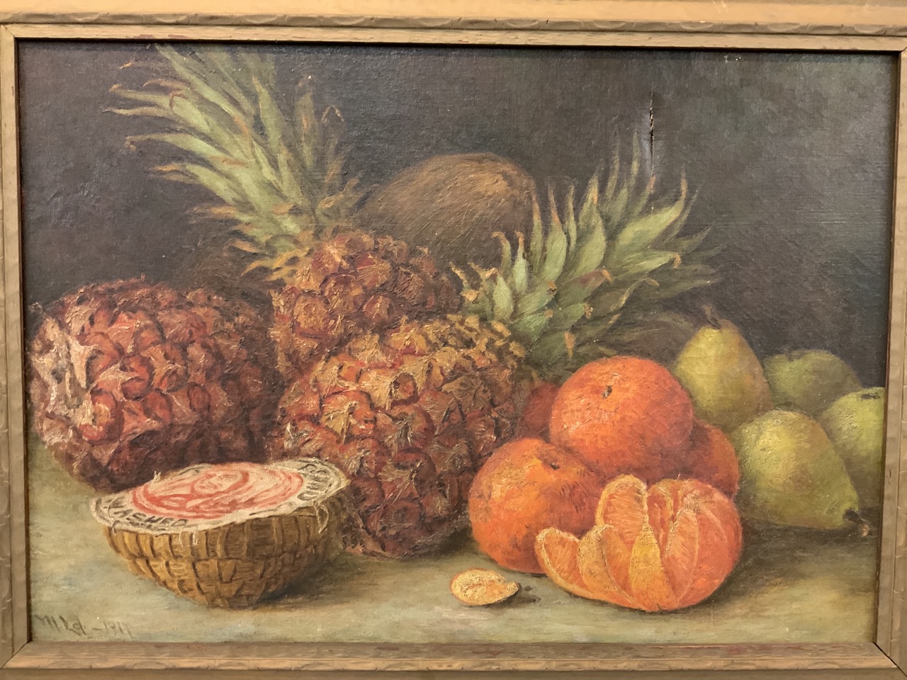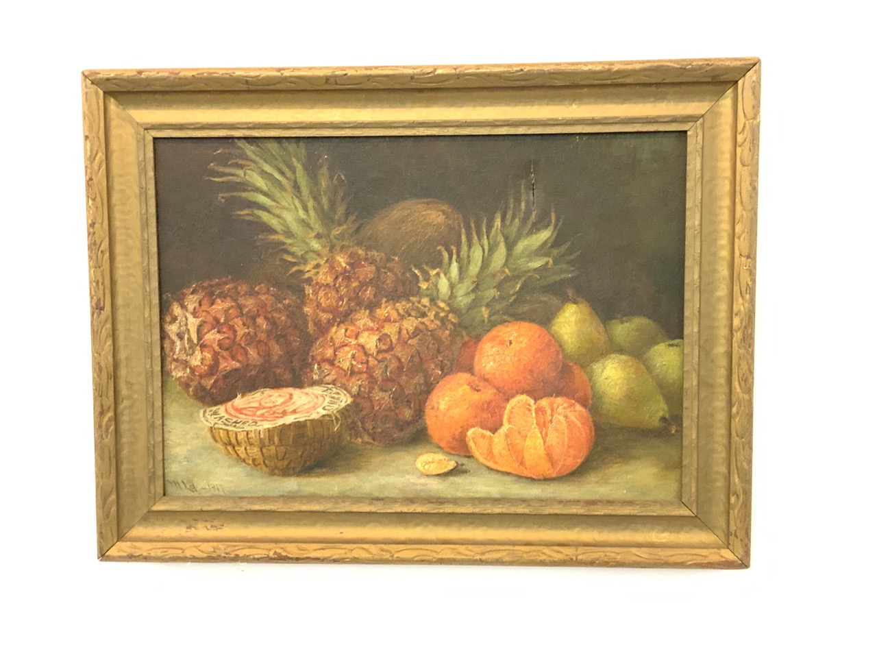 c. 1917 Illegibly signed still life with fruits.