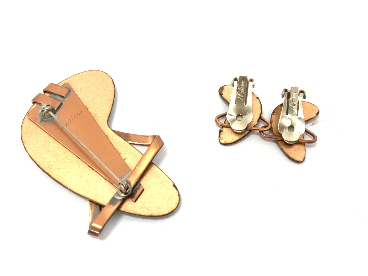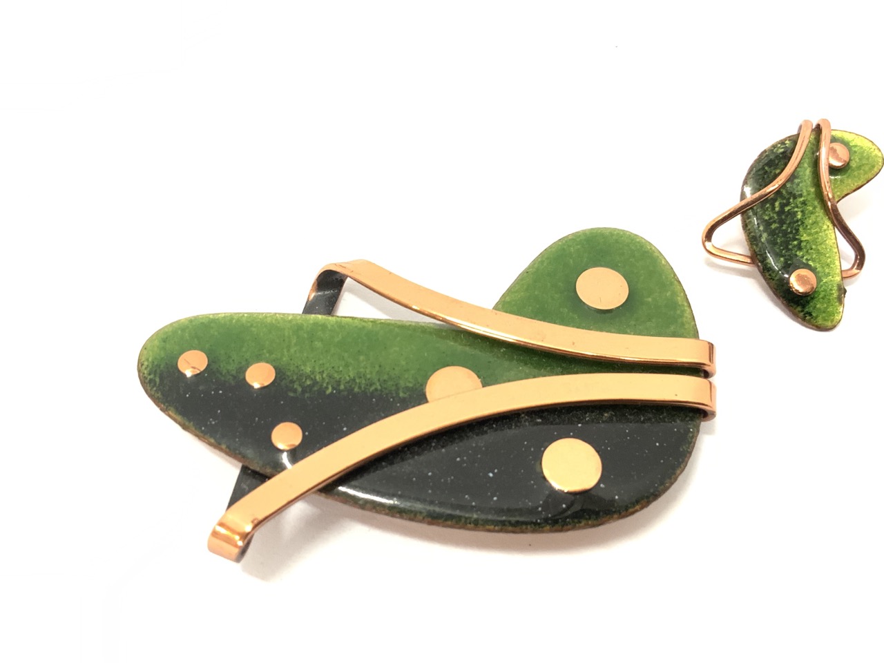 60's Matisse Green Brooch and Earrings Set