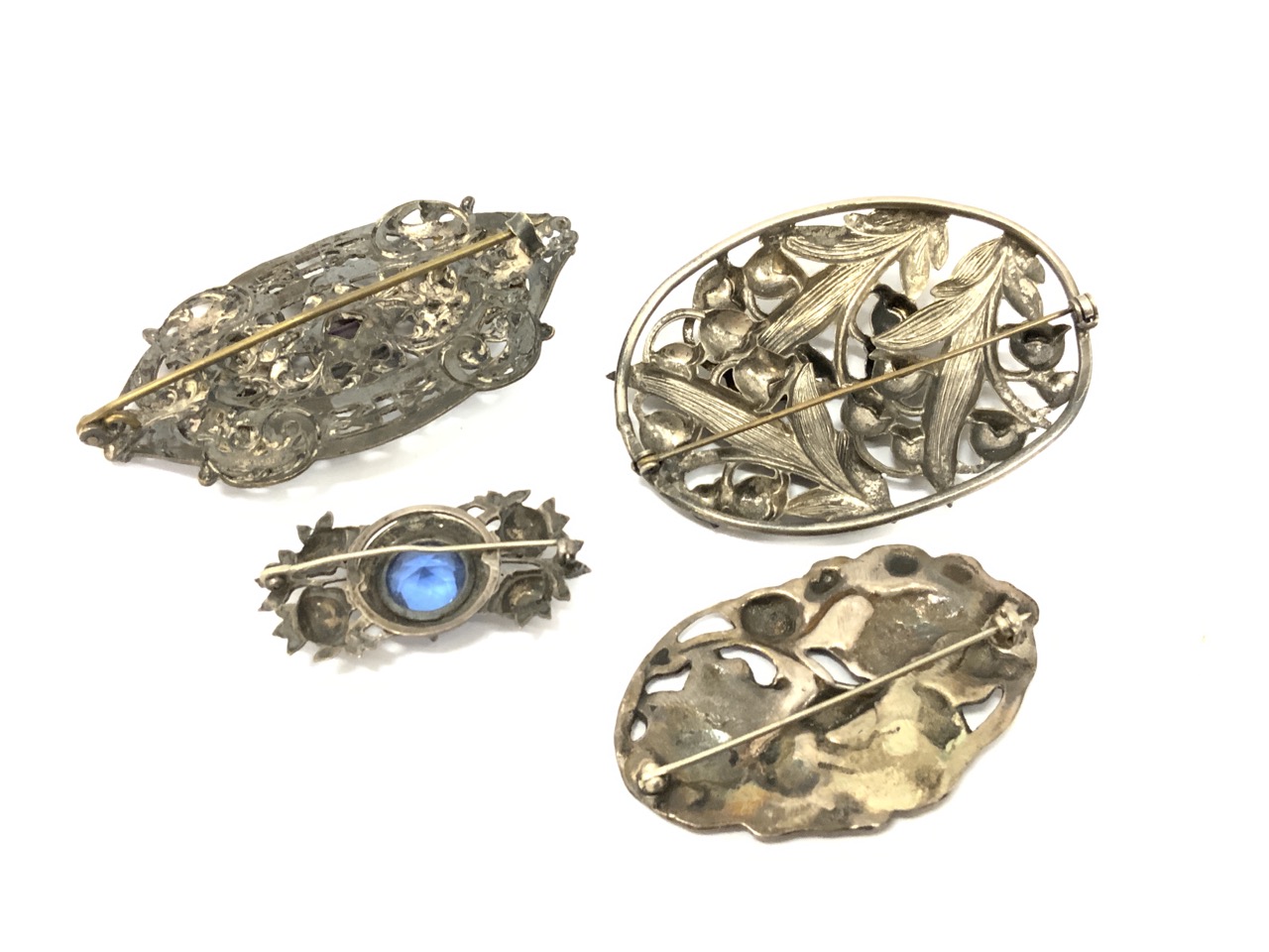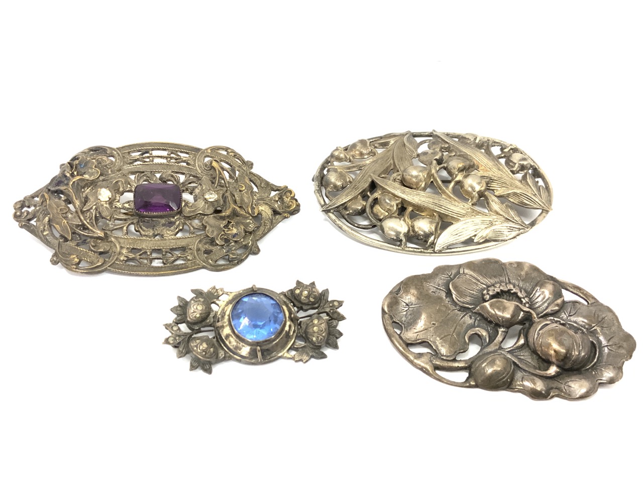 Four (4) Sterling Silver Art Nouveau Pins