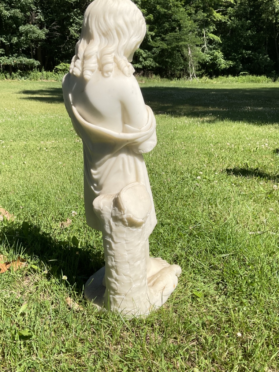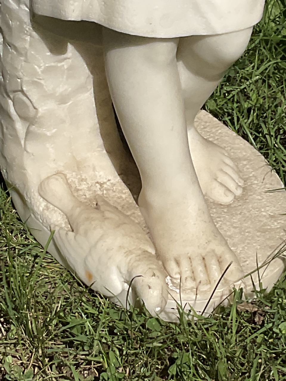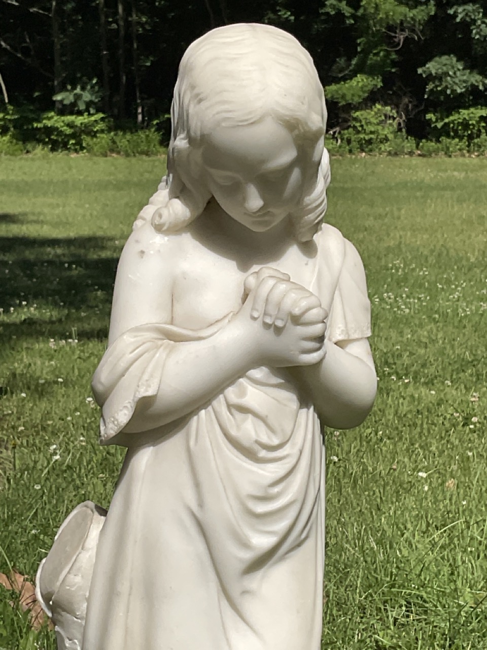 Marble statue of a little girl mourning her dead pet bird.