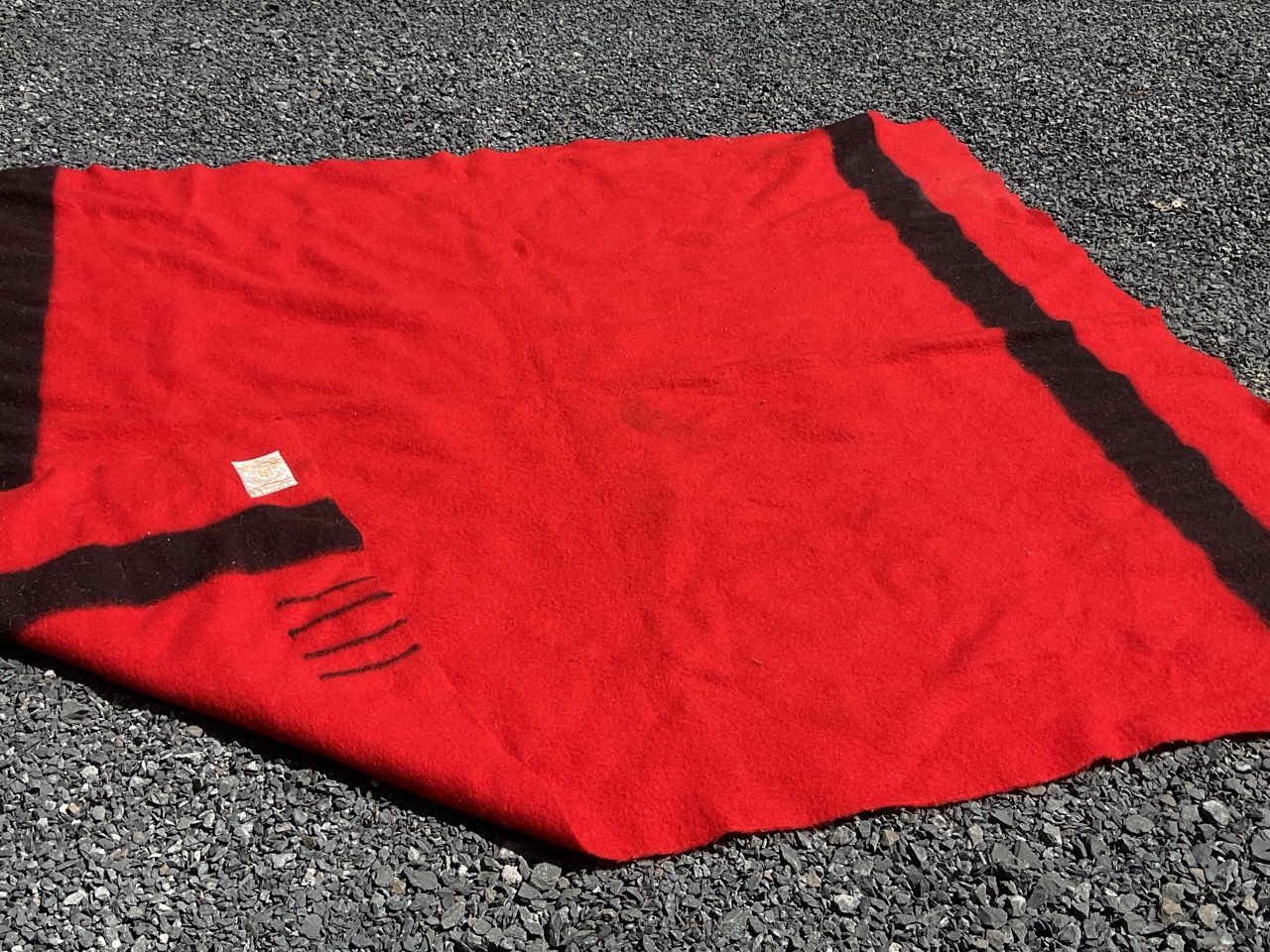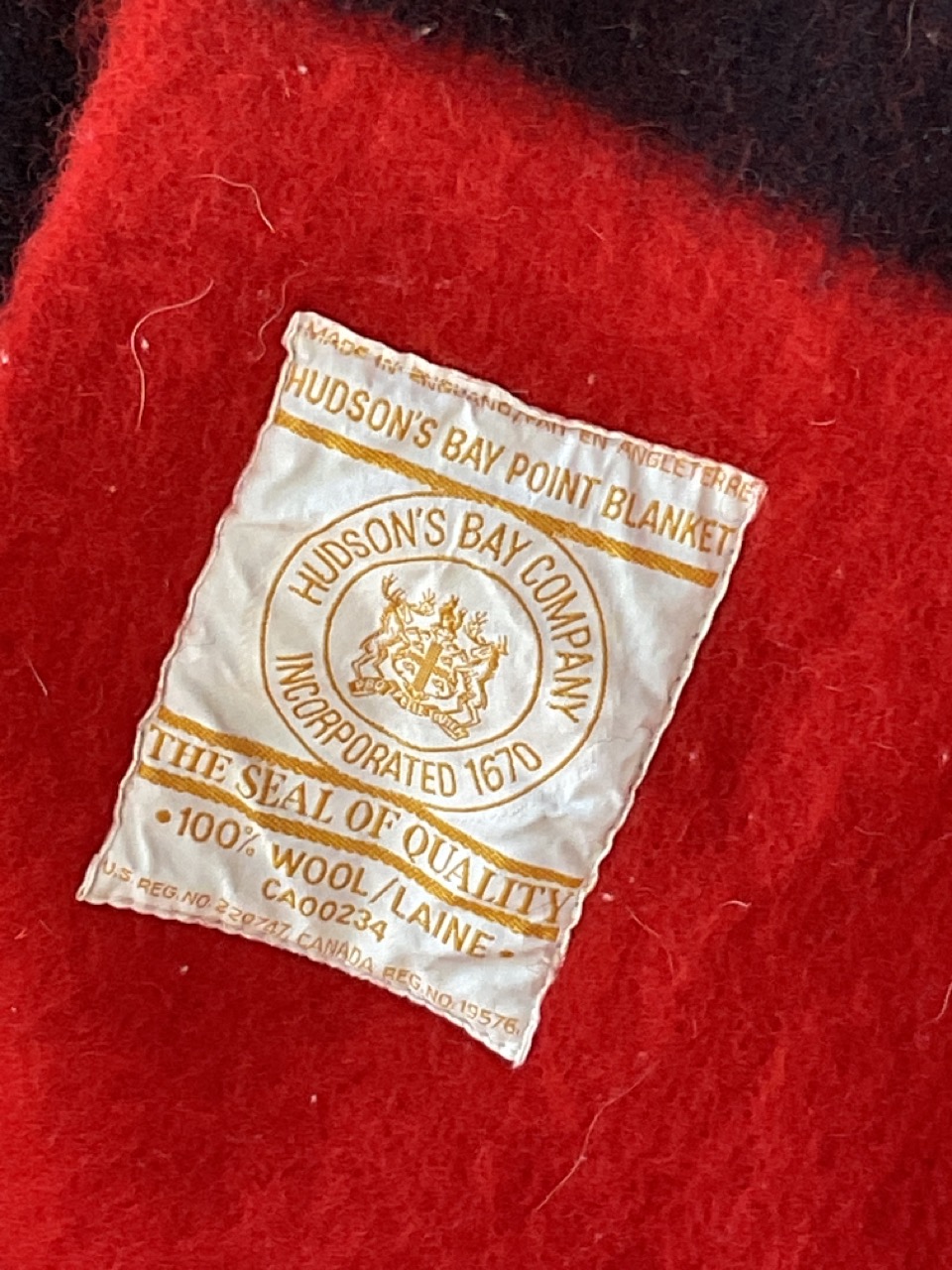 Hudson Bay signed red wood blanket. One small surface stain noted. Please see photograph preview. Overall very good.