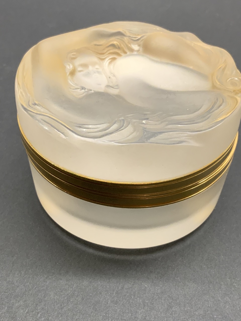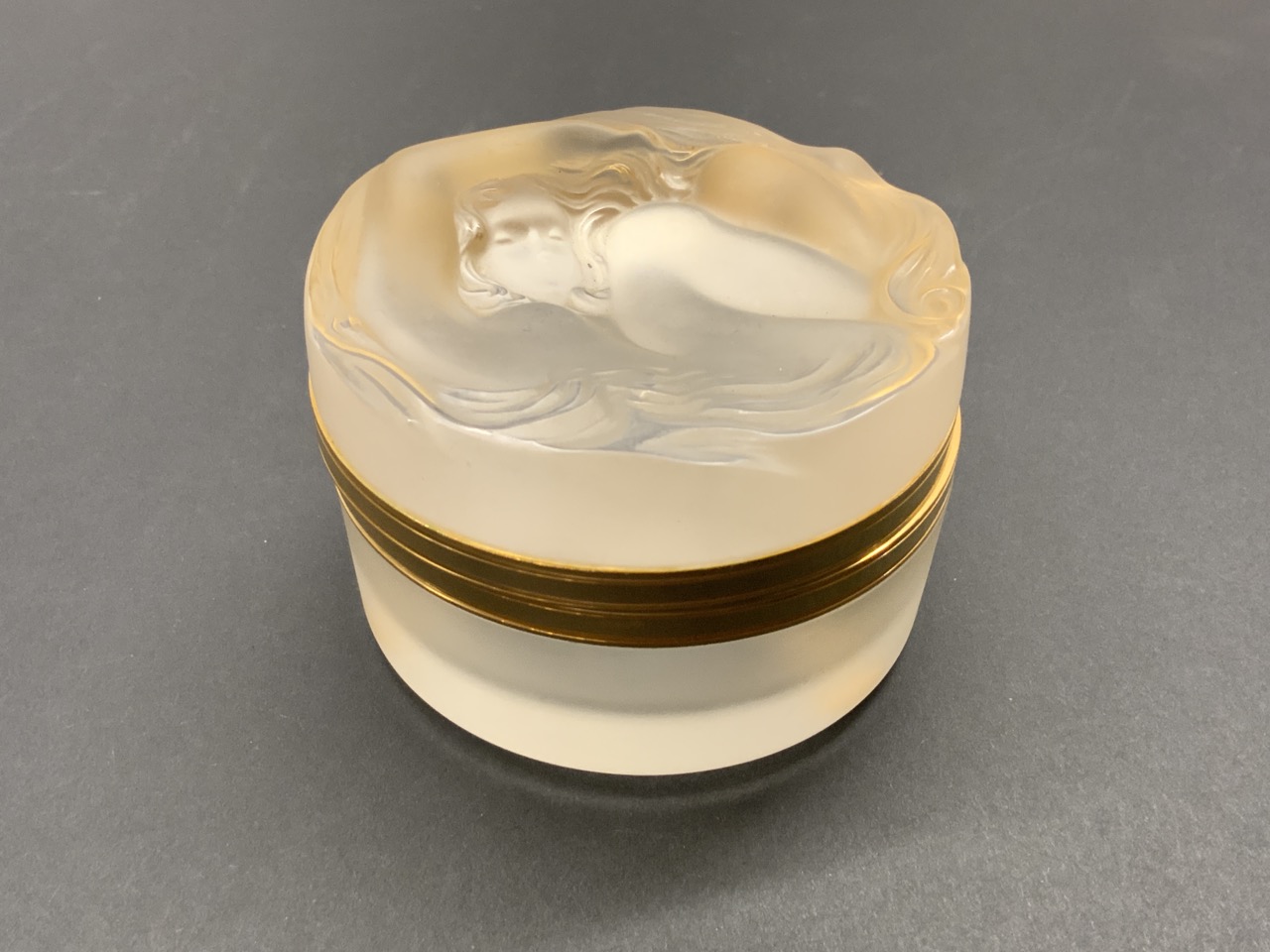 Lalique Hinged Dresser Jar "Daphne" With Nude Figure.