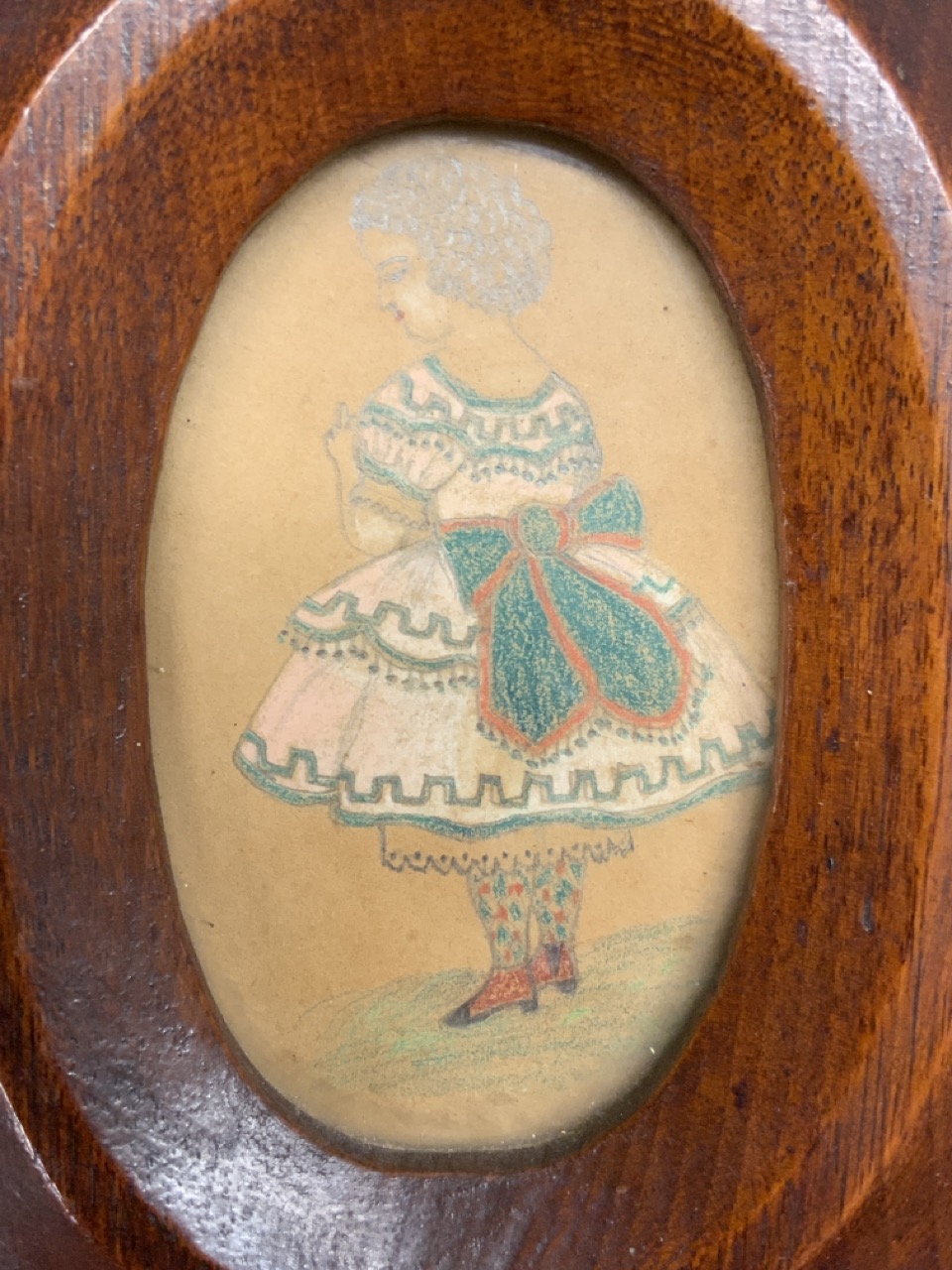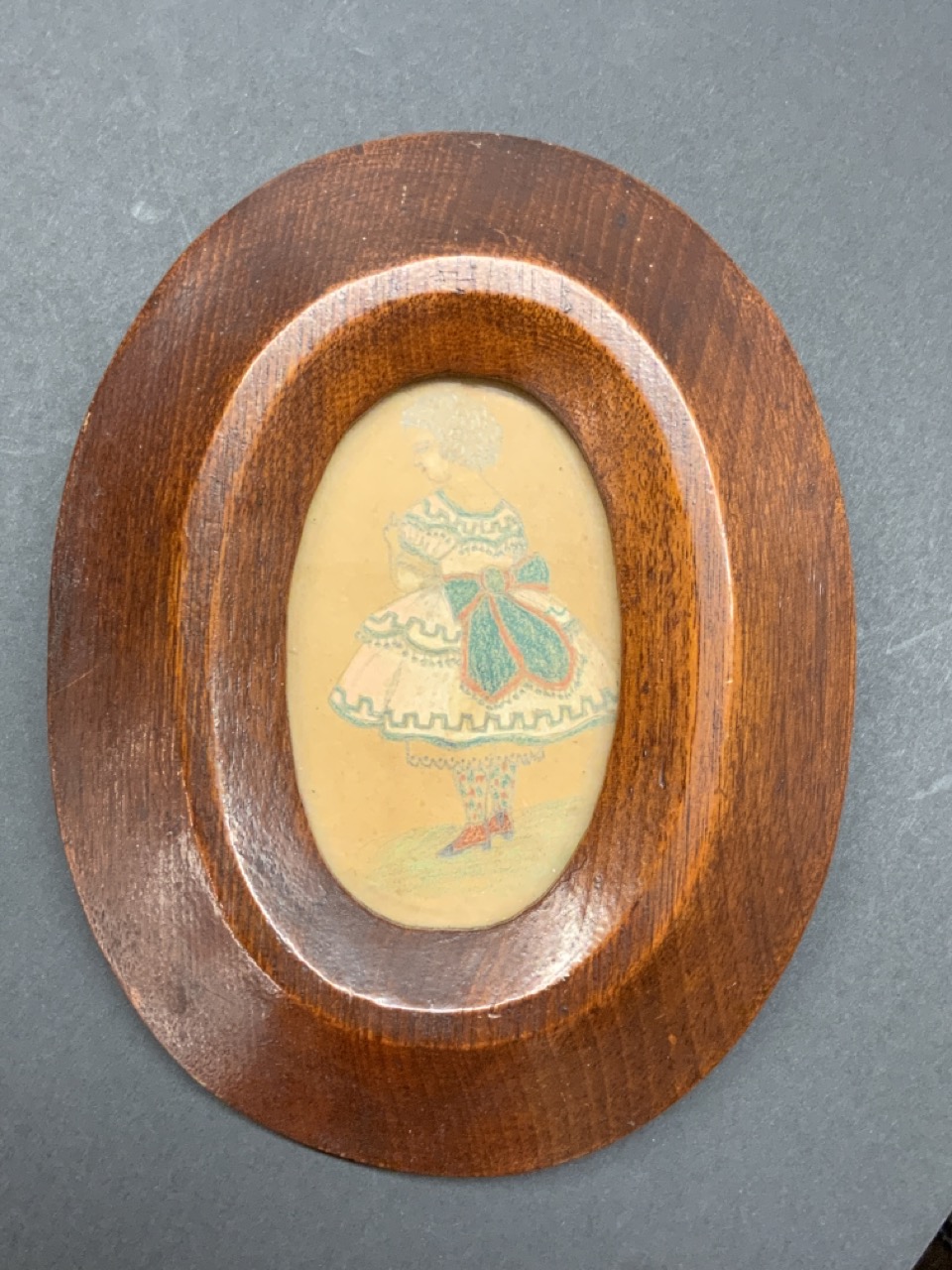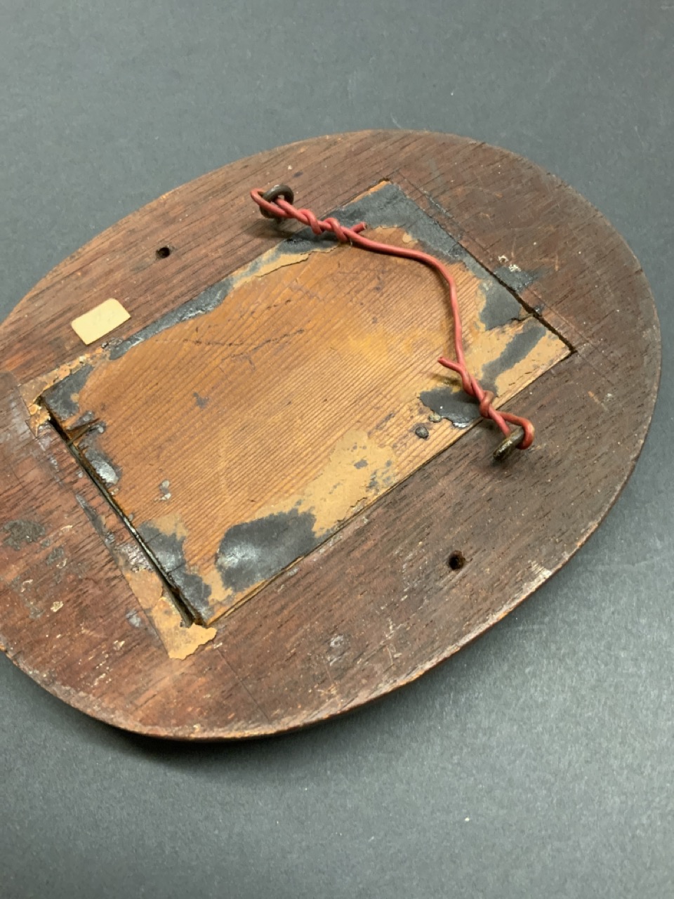 American Folk Art Portrait. Housed in an oval oak hardwood frame and pine backing.