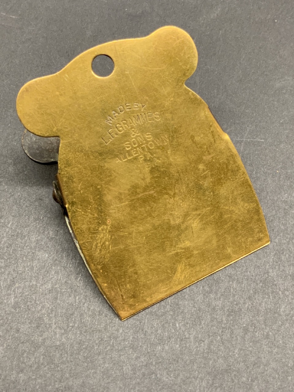 L.F. Grammies & Sons , Allentown, Pennsylvania advertising Office Use Clip. Victorian era, made of brass.