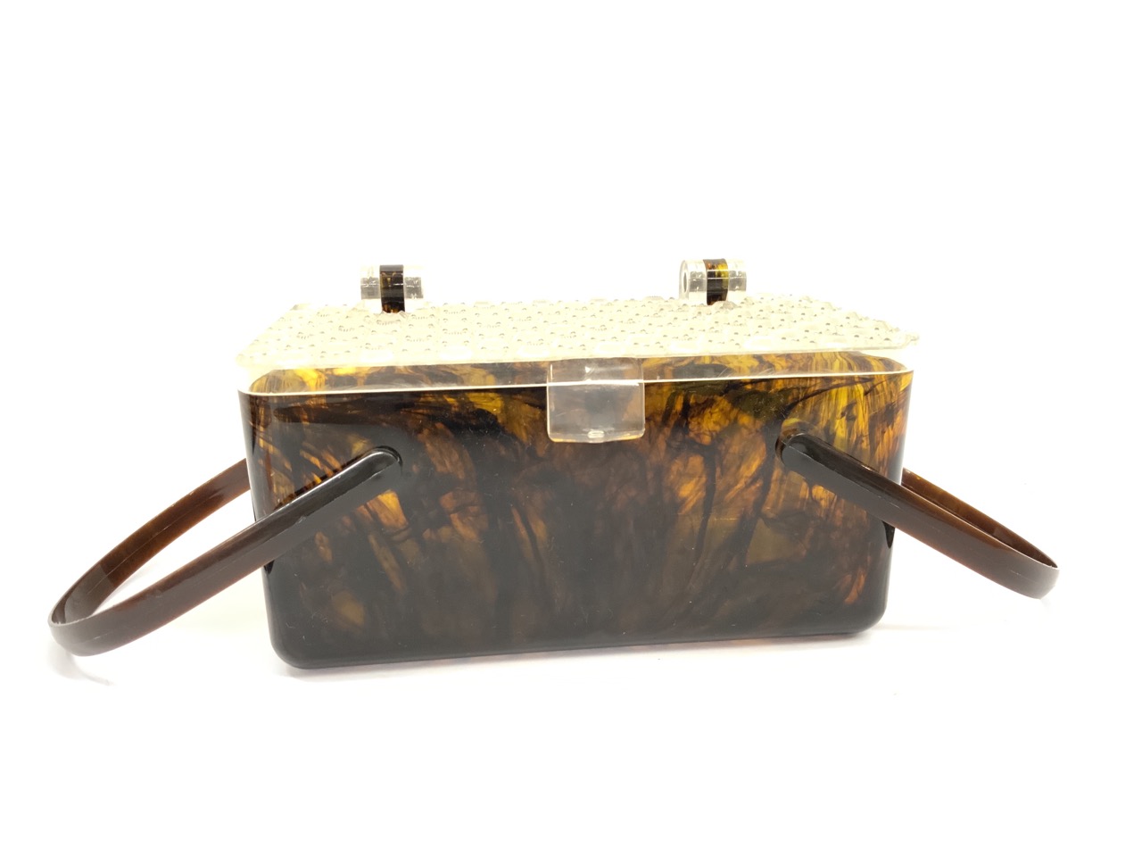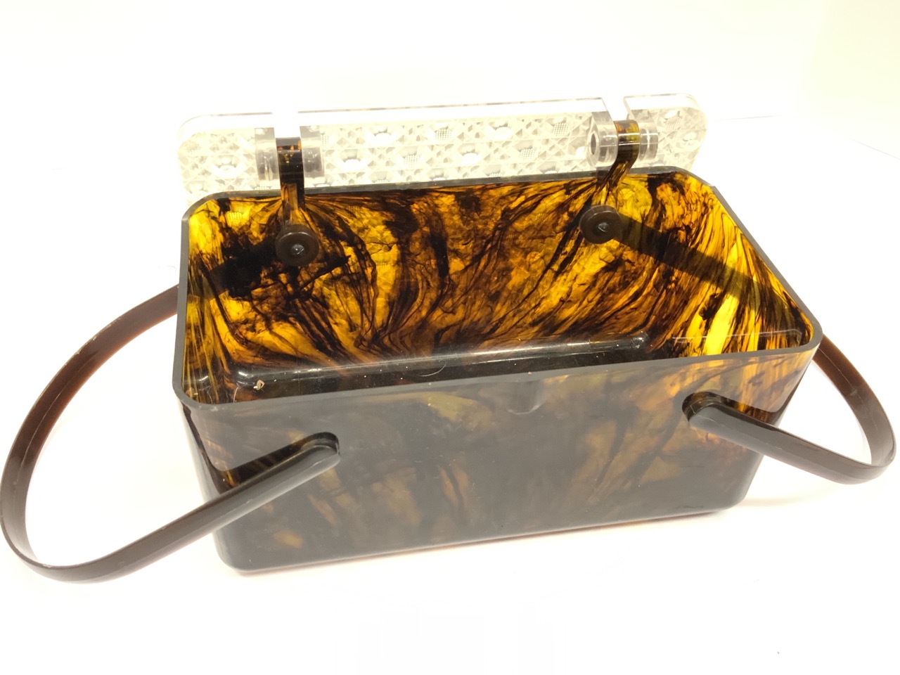 Merle Norman Mock Tortoise Shell Lucite Hand Bag