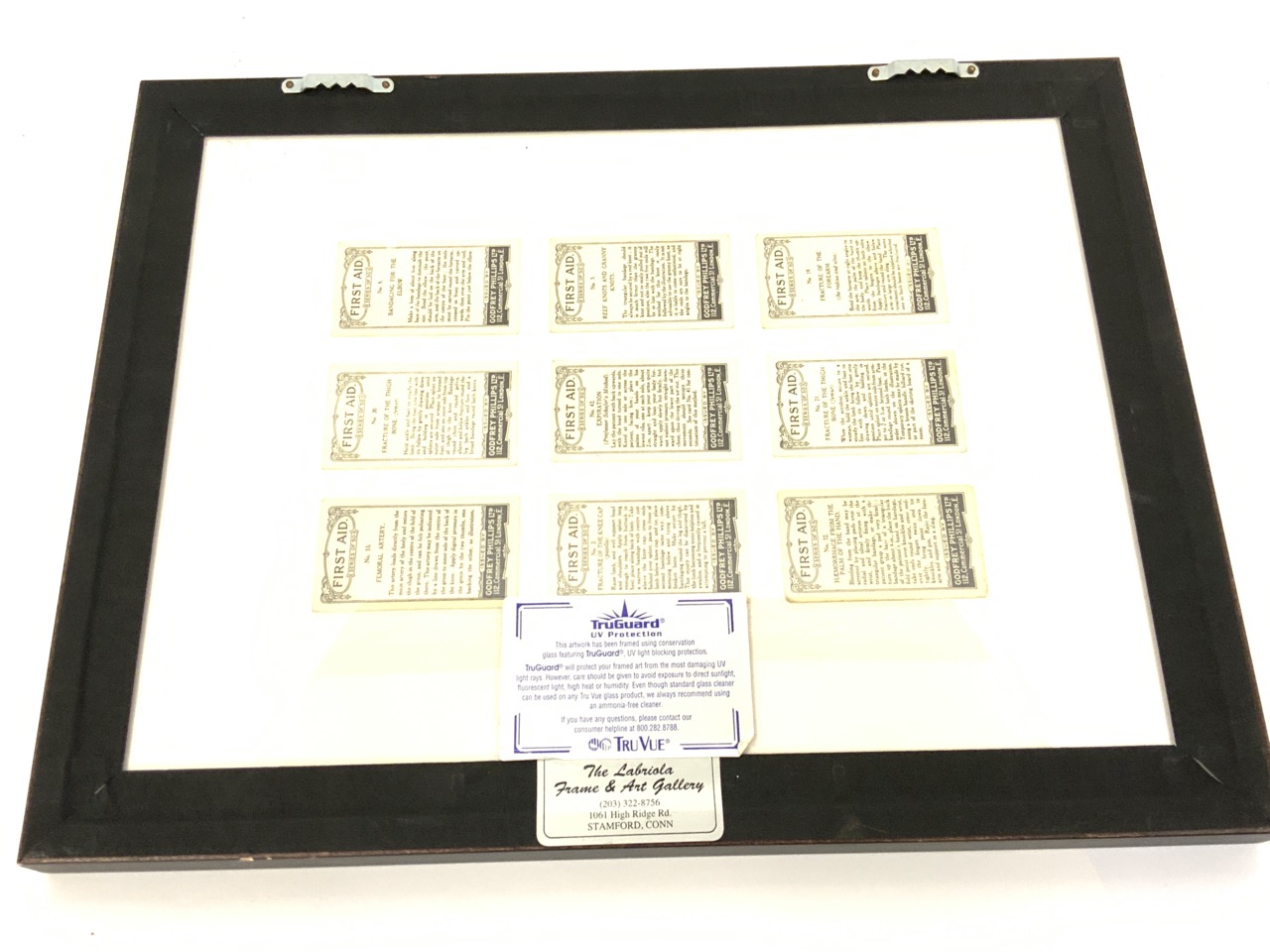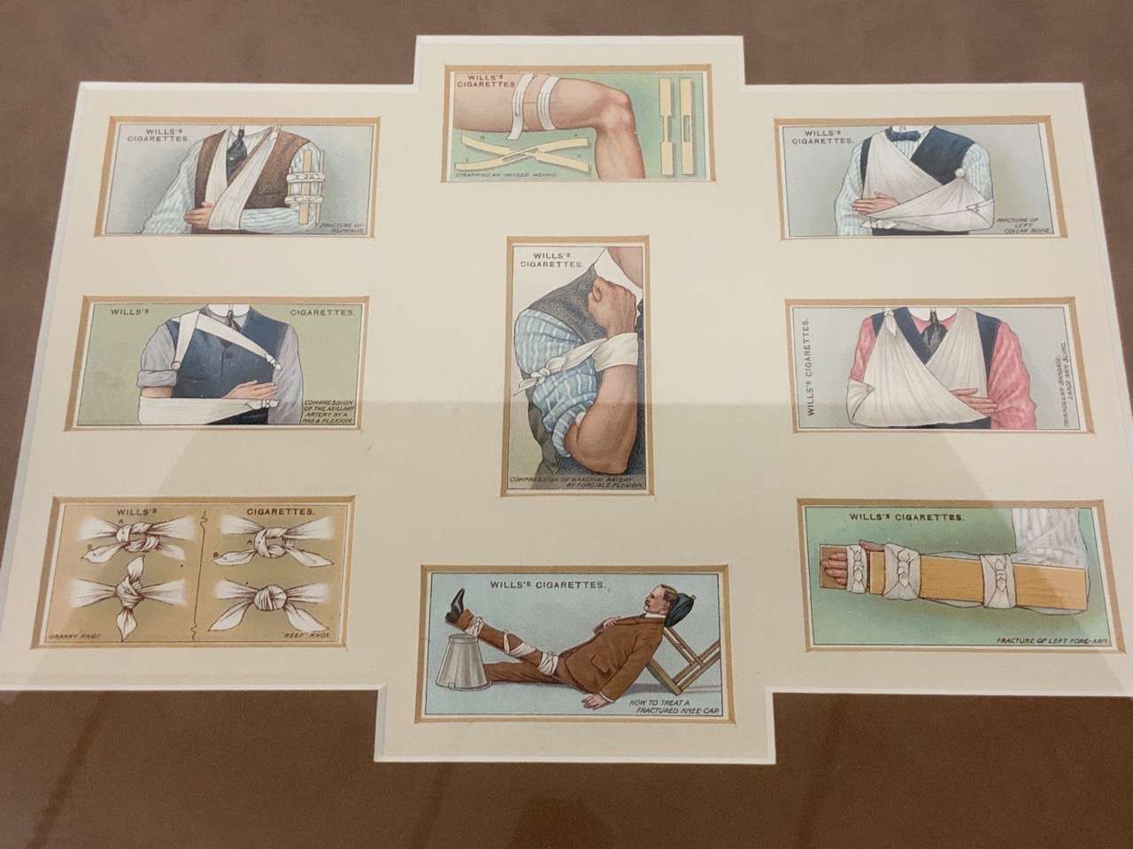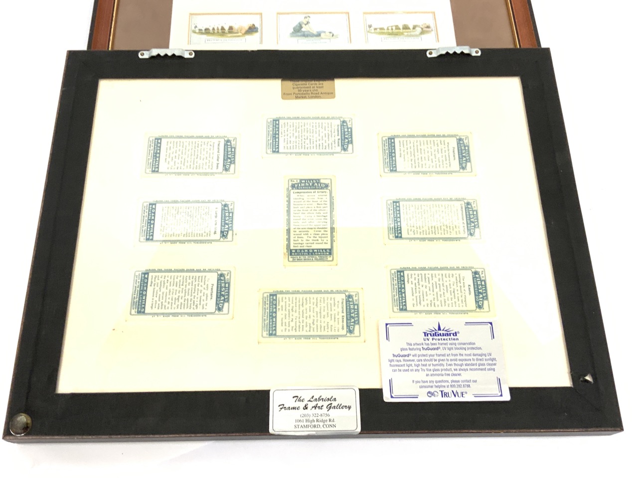Two collections framed of cigarette/tobacco trade cards. Medical related.