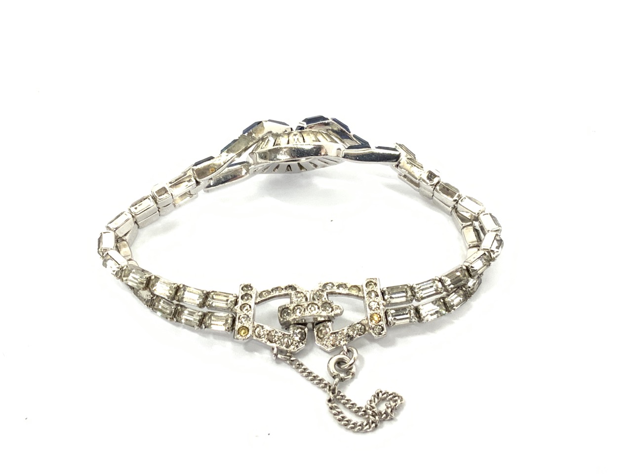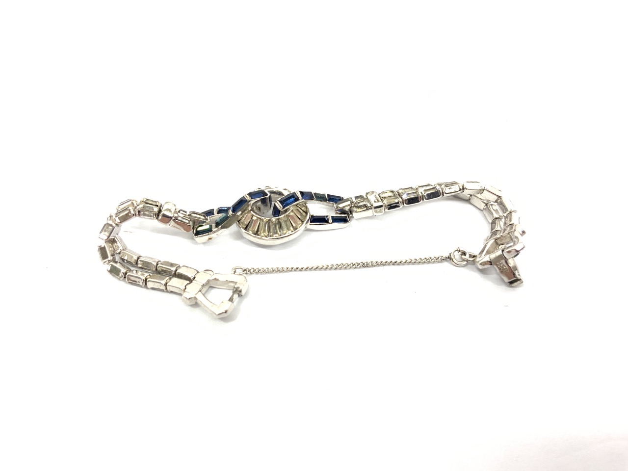 Early Mazer Bros. Evening ware costume bracelet. Faux diamond rhinestones and blue sapphire.