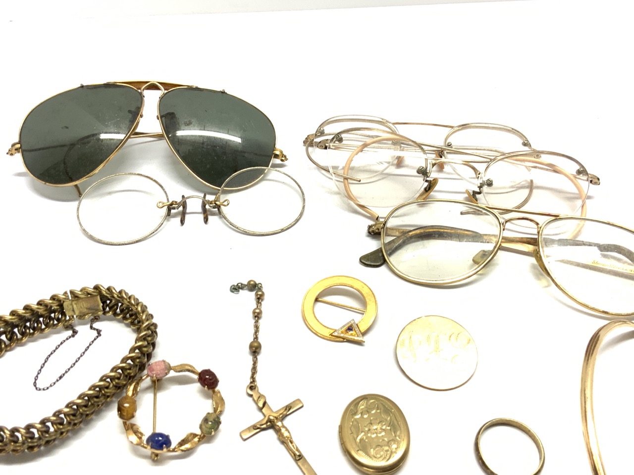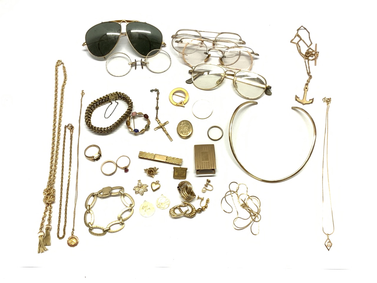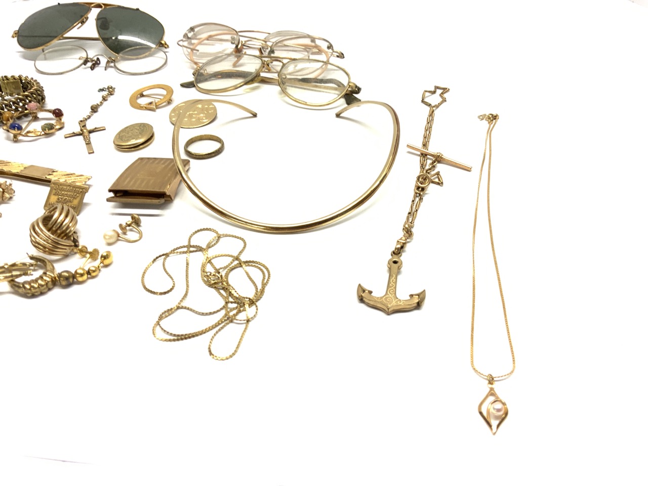 Gold Filled Jewelry Lot with Glasses, Necklaces, Earrings, Pendants, Bracelets