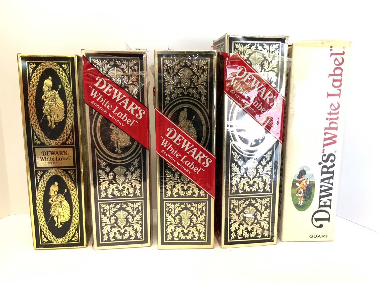 Collector Bottles Five PCs Dewar’s White Label Whiskey Sealed!