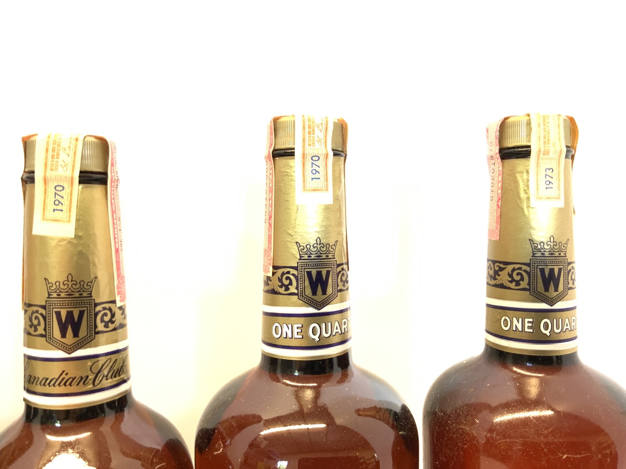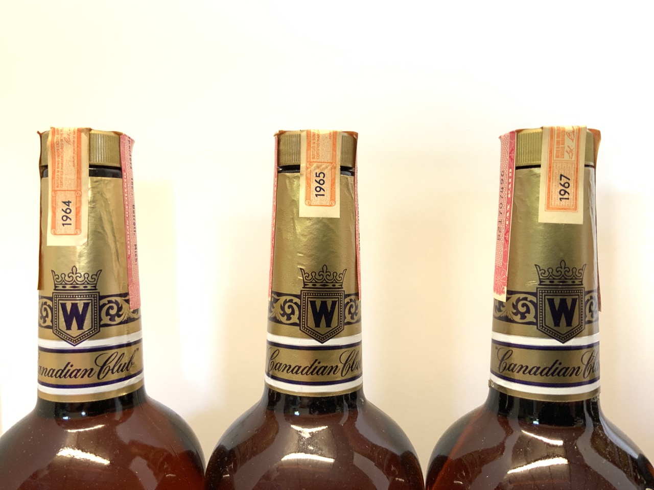 Collector Bottles Six (6) Qty Canadian Club Hiram Walker & Sons Whiskey. Sealed! Estate Found! 1964,1965,1976,1970 (2), 1973.