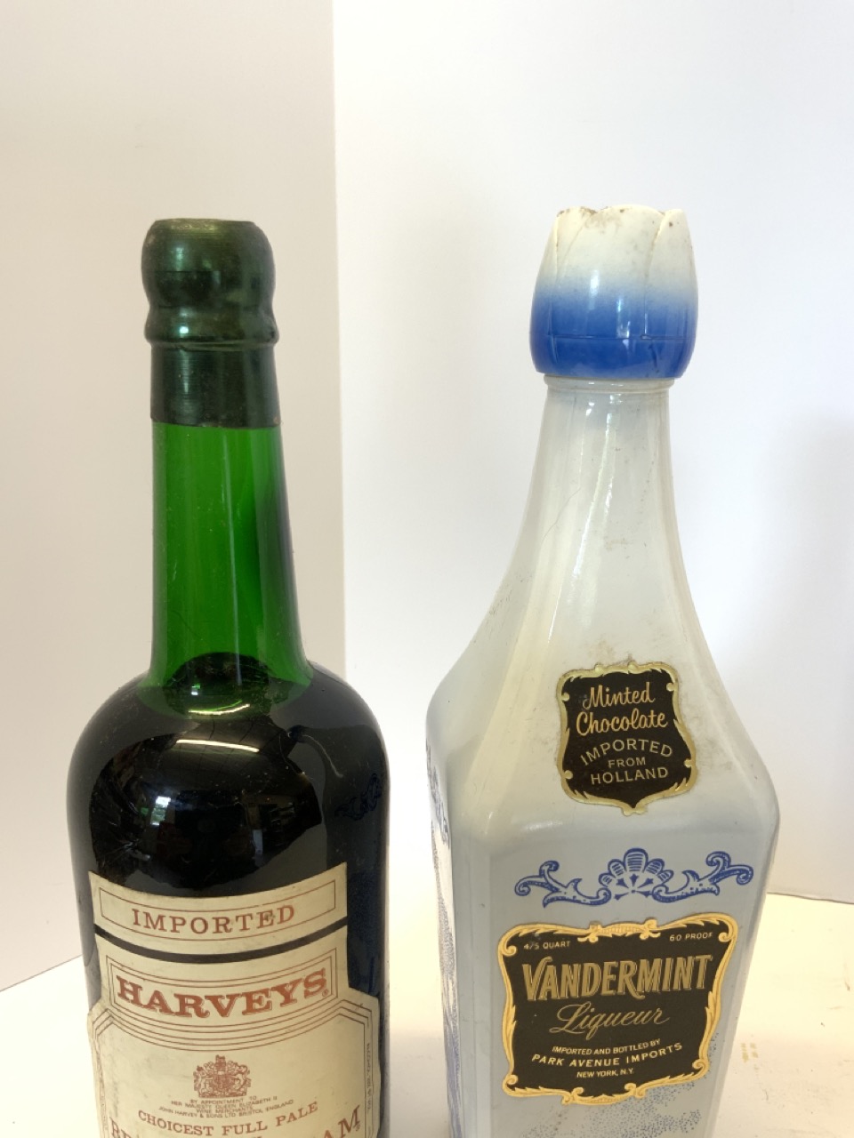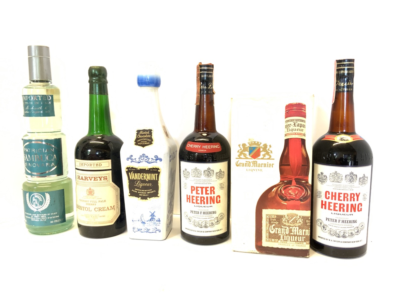 Collector Bottles Six (6) Patrician Sambuca di Novara,Harveys Bristol Cream, Vandermint Liquor, Peter Heering (2), and Grand Marnier Liqueur. Sealed! Estate Found.