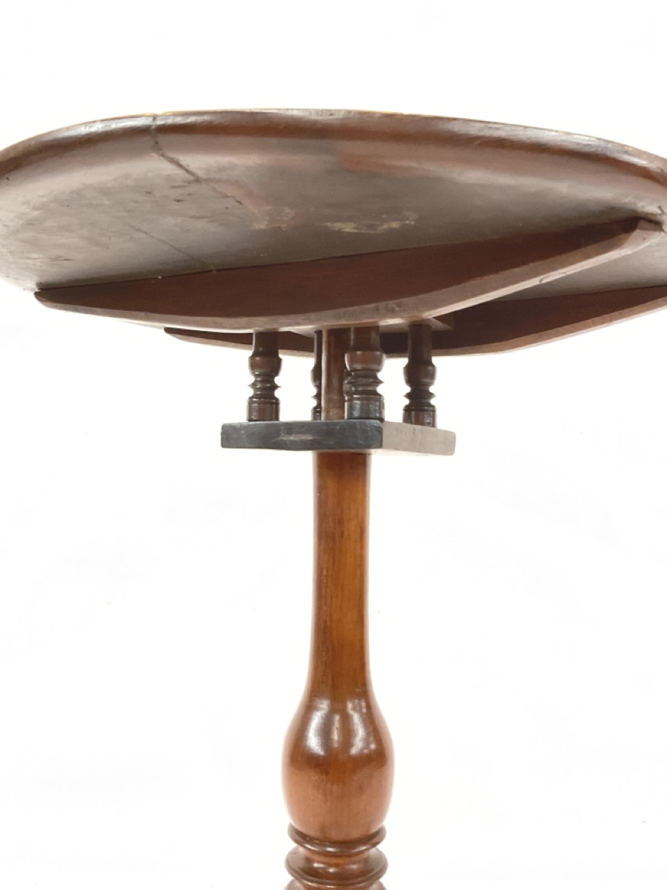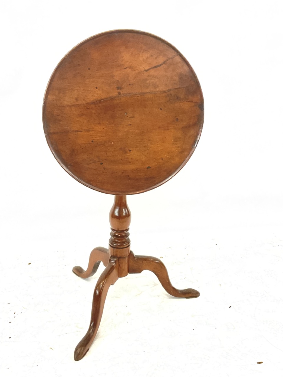 C. 1760 New England Cherry And Oak Birdcage Tilt Top Tea Table.