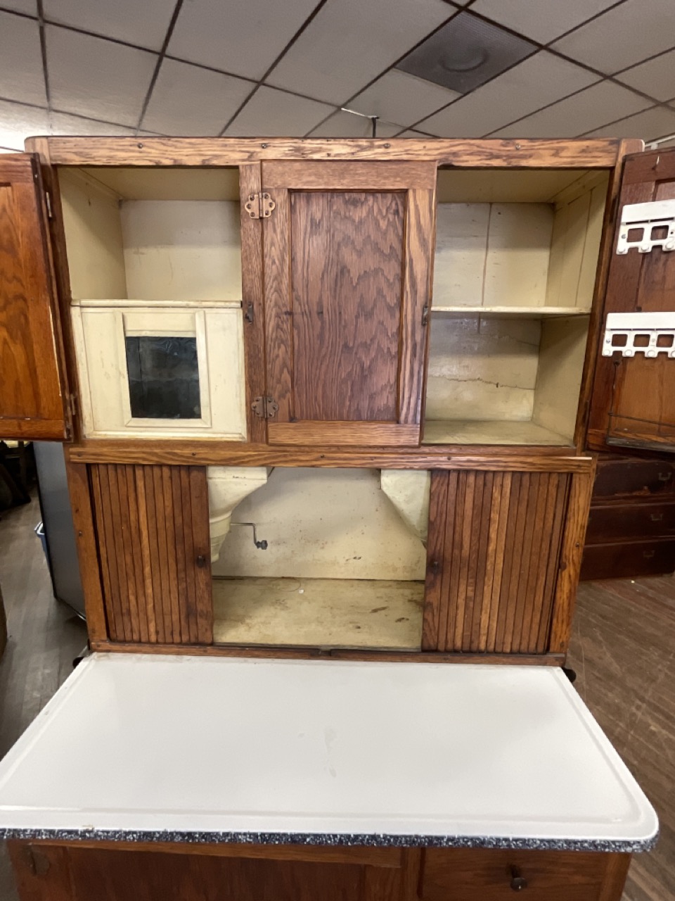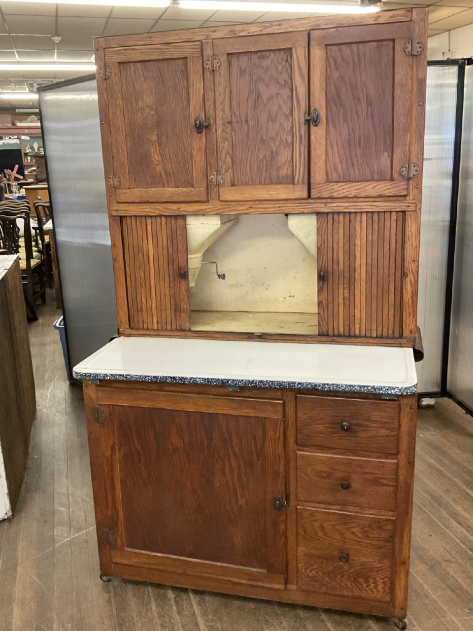 19th c. Farmhouse marble top table, American 18th c. corner cupboard,