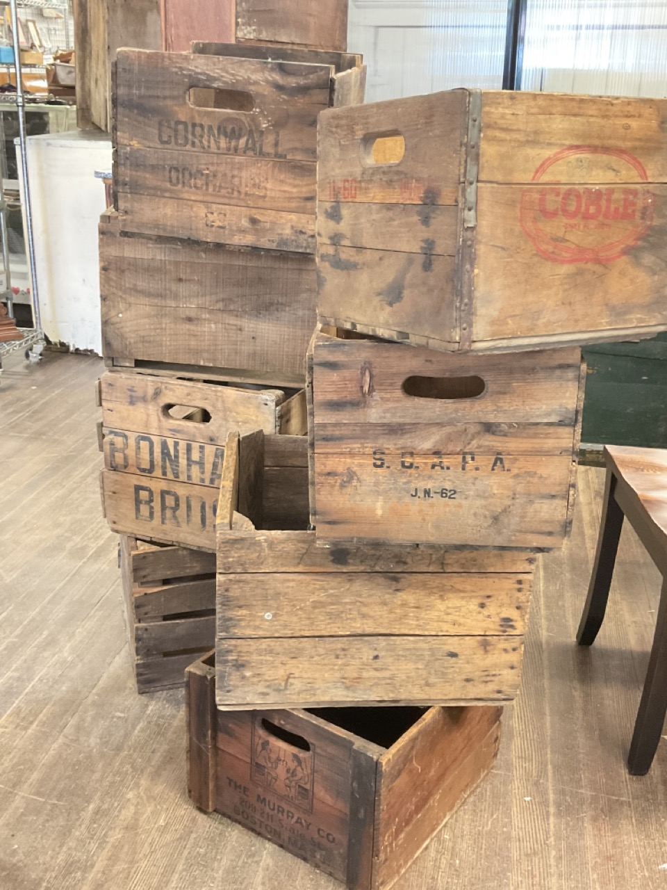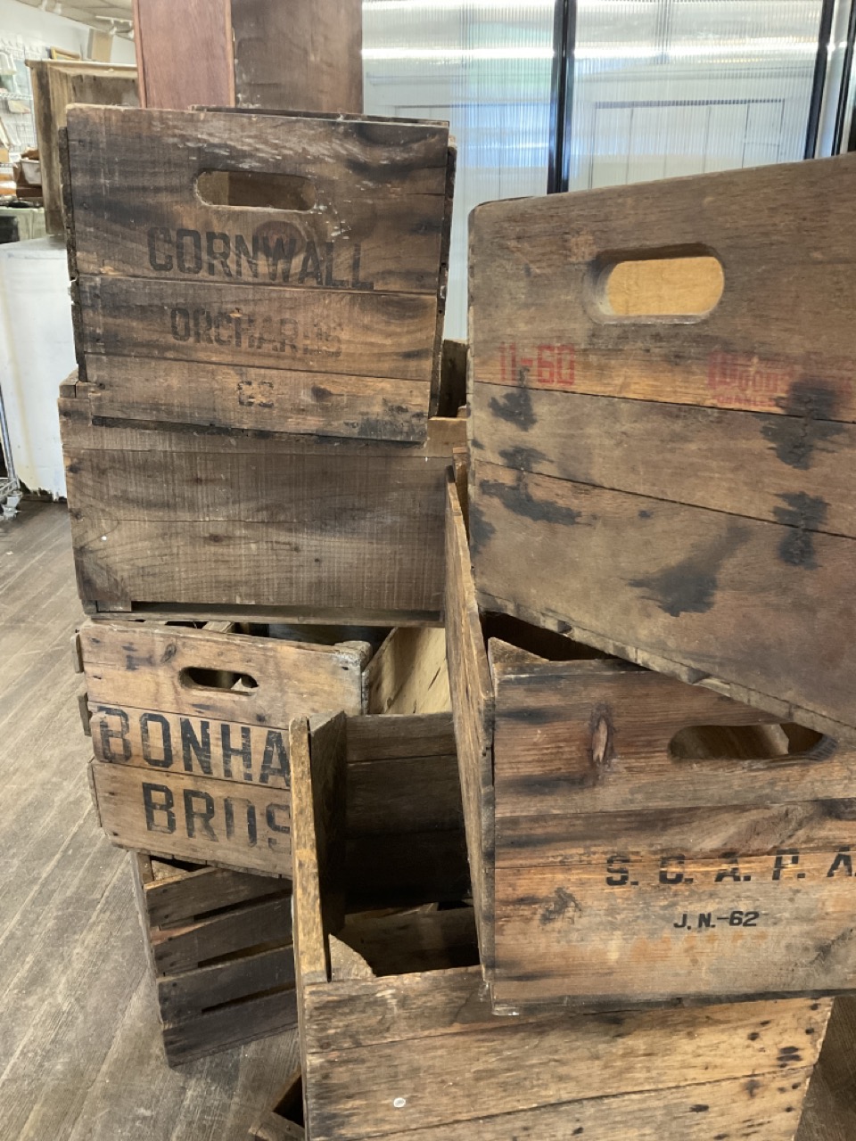 Eight (8) Vintage And Antique Wooden Produce Crates