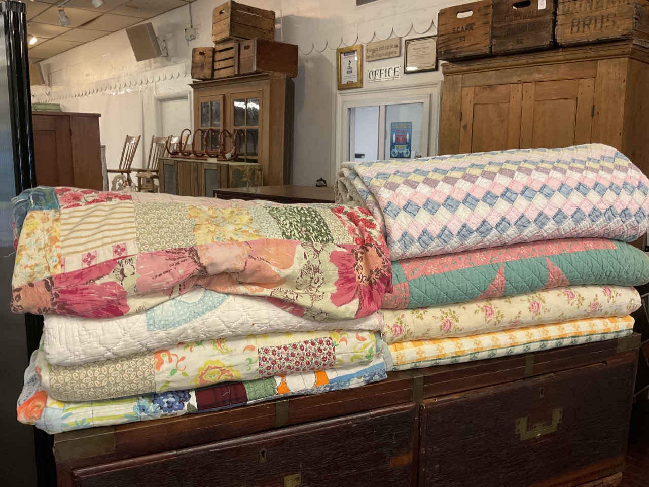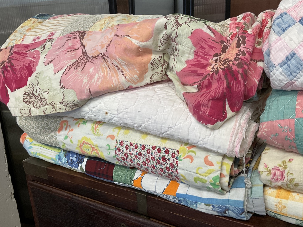 Estate compiled groiuping of nine (9) vintage quilts and blankets.