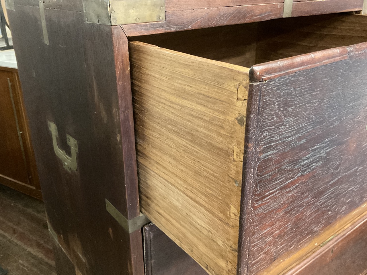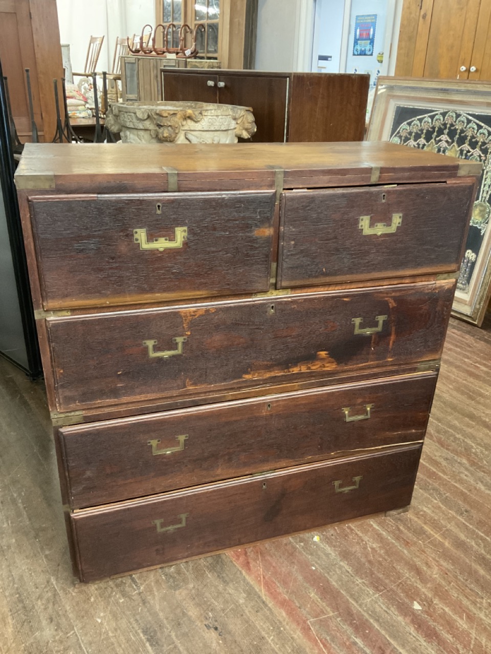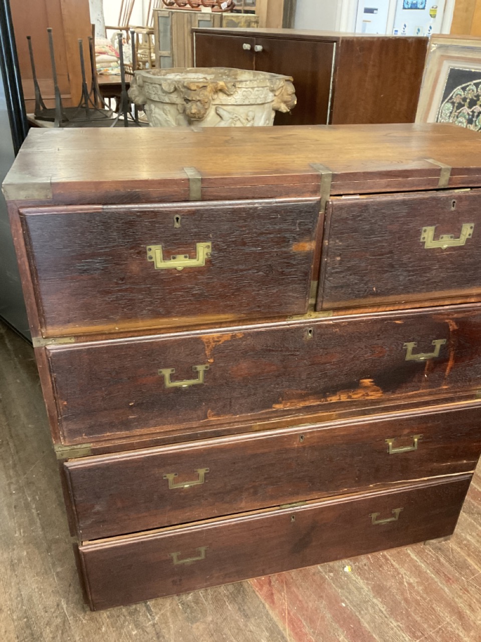 Two/Three Antique Traveling Campaign Chest With Brass Pulls And Hardware. 19th century.