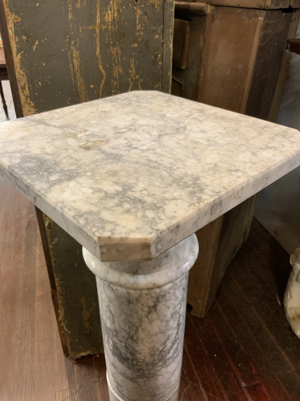 19th c. Farmhouse marble top table, American 18th c. corner cupboard,