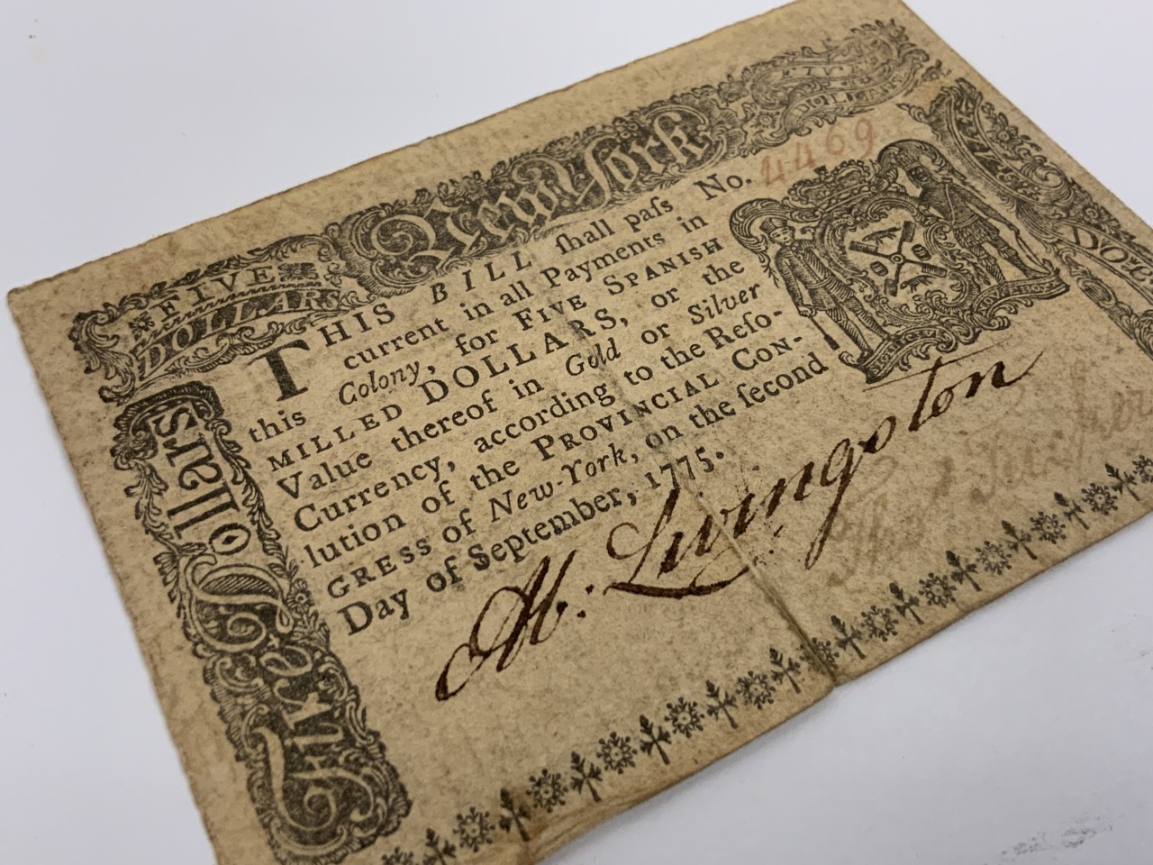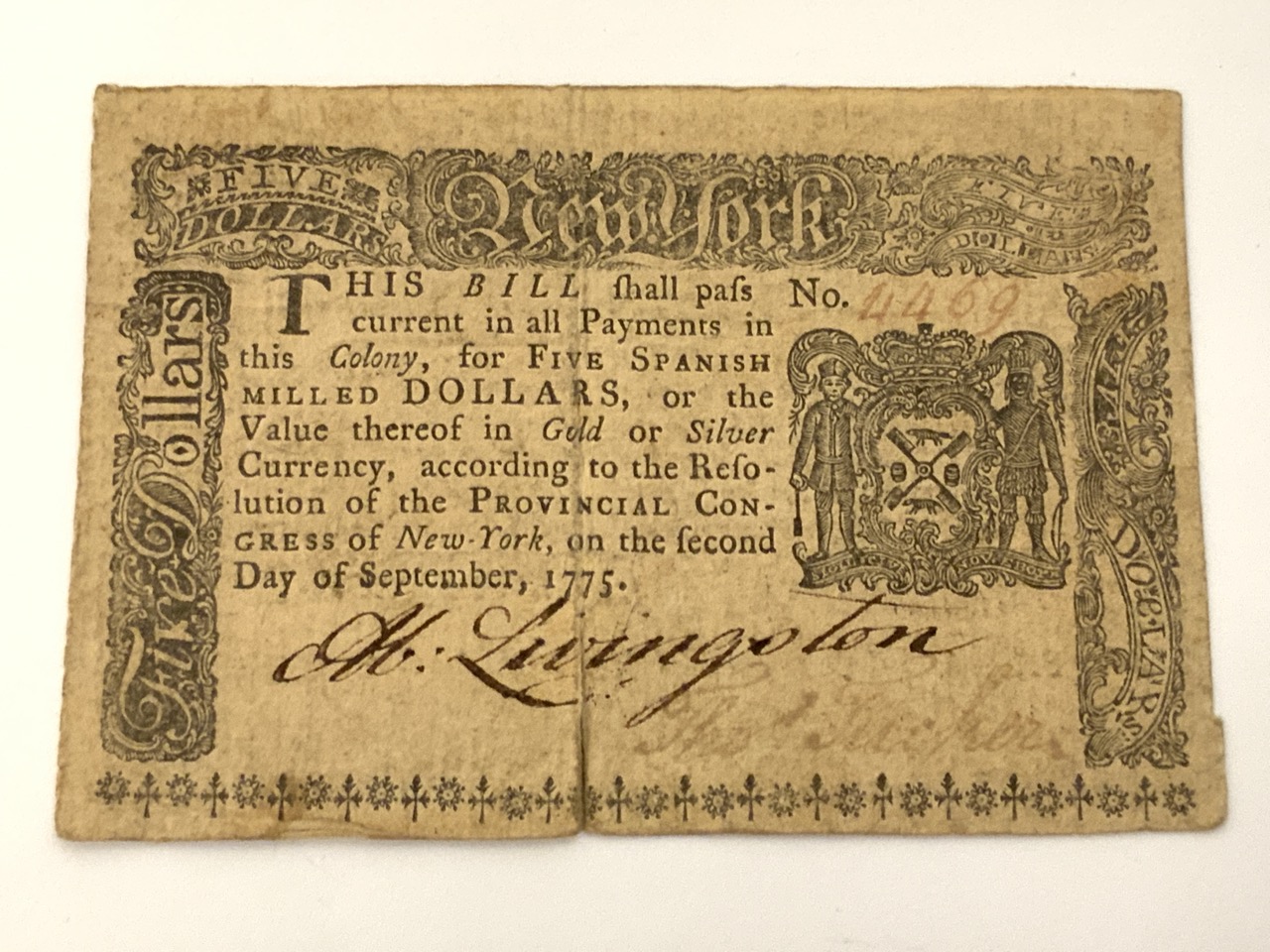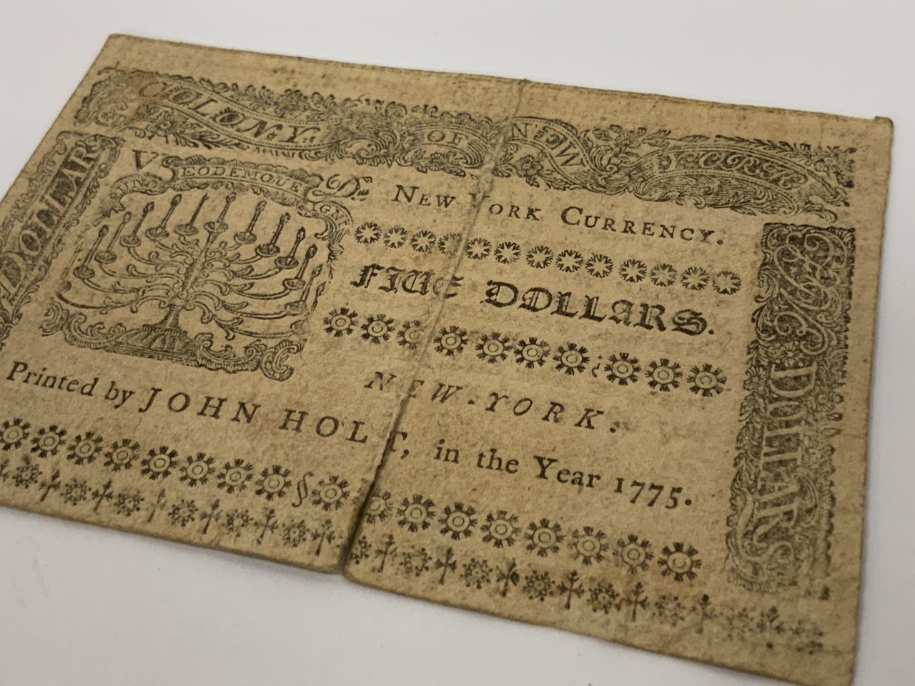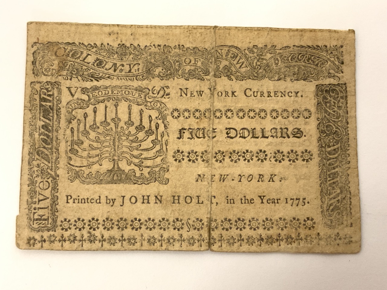 NY $5 Bank Note 1776 Colony Of New York. John Holt.