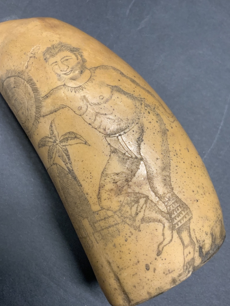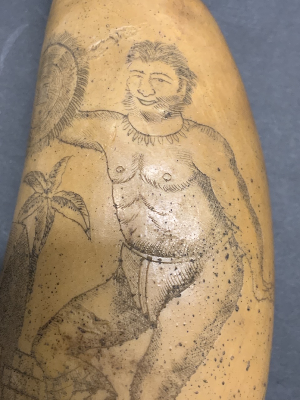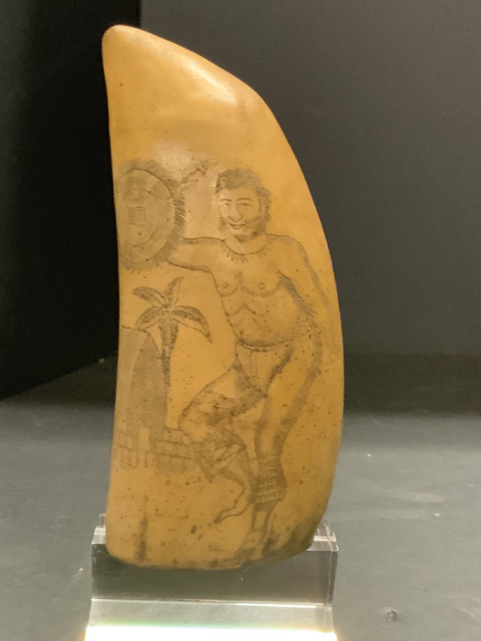 Scrimshaw Native Whale Tooth, 19th Century. Tribal Hunter probably South Pacific.