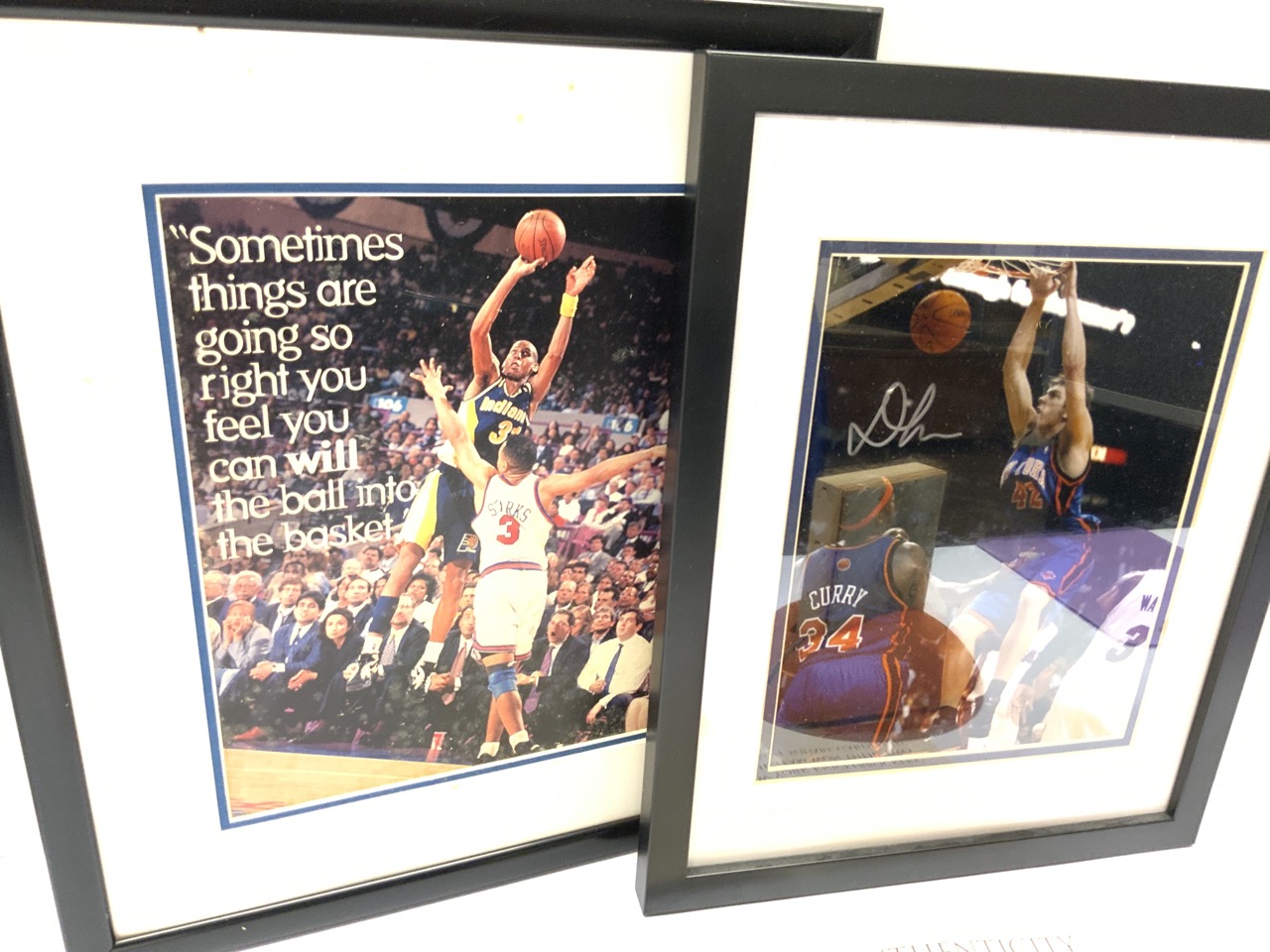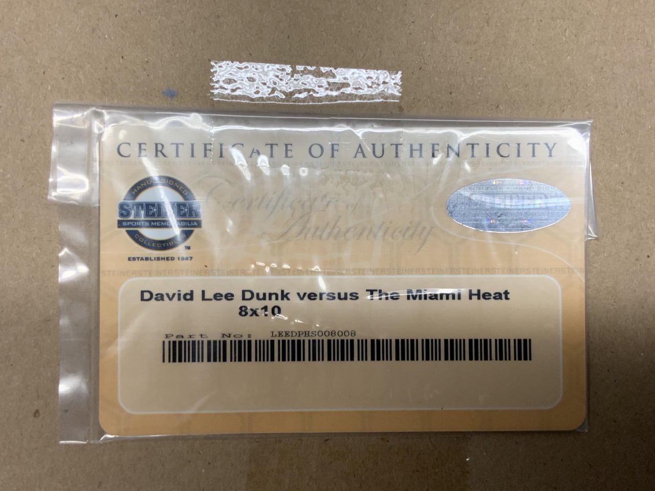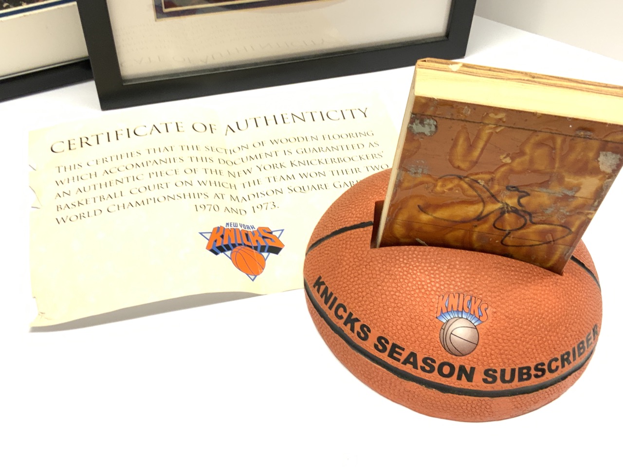 Basketball memorabilia Madison Square Garden wooden flooring with some heat damage. David Lee Dunk, Steiner Sports Signed Photo.