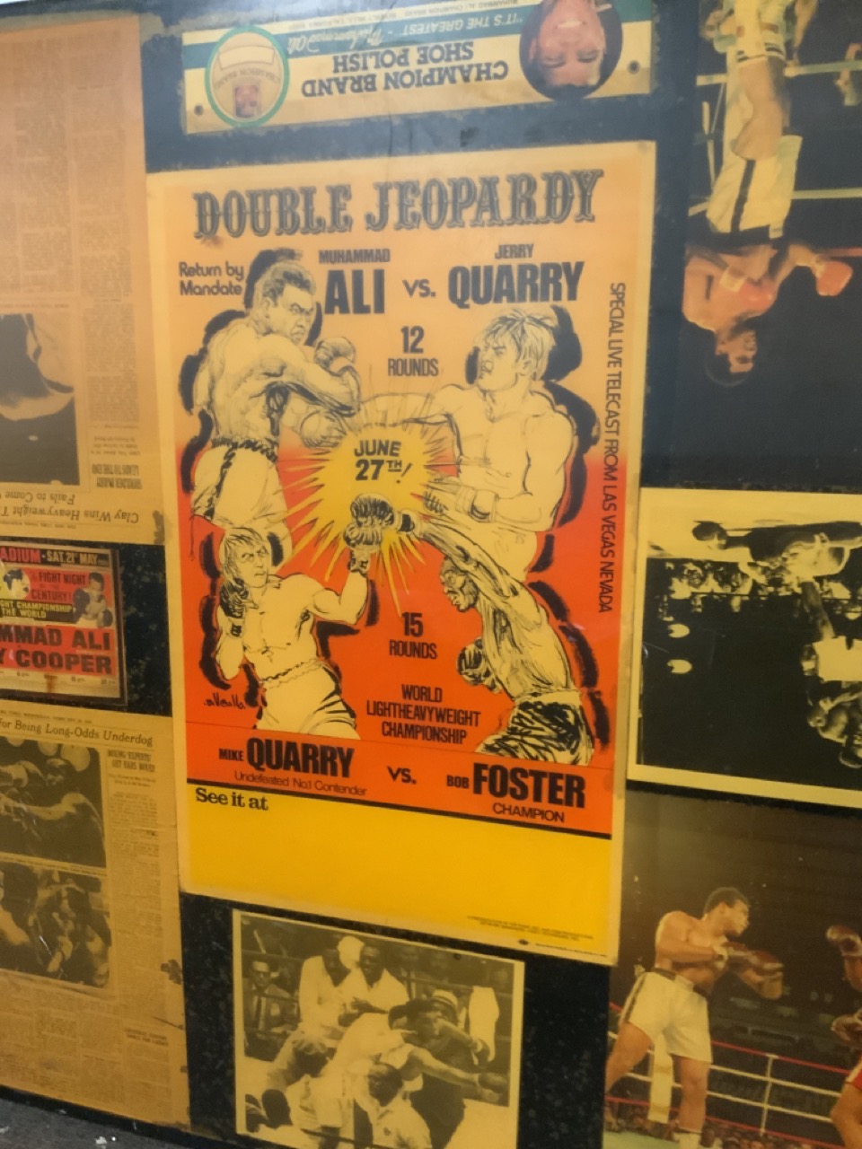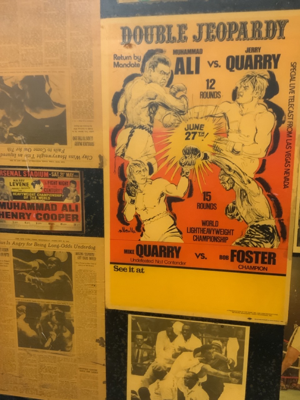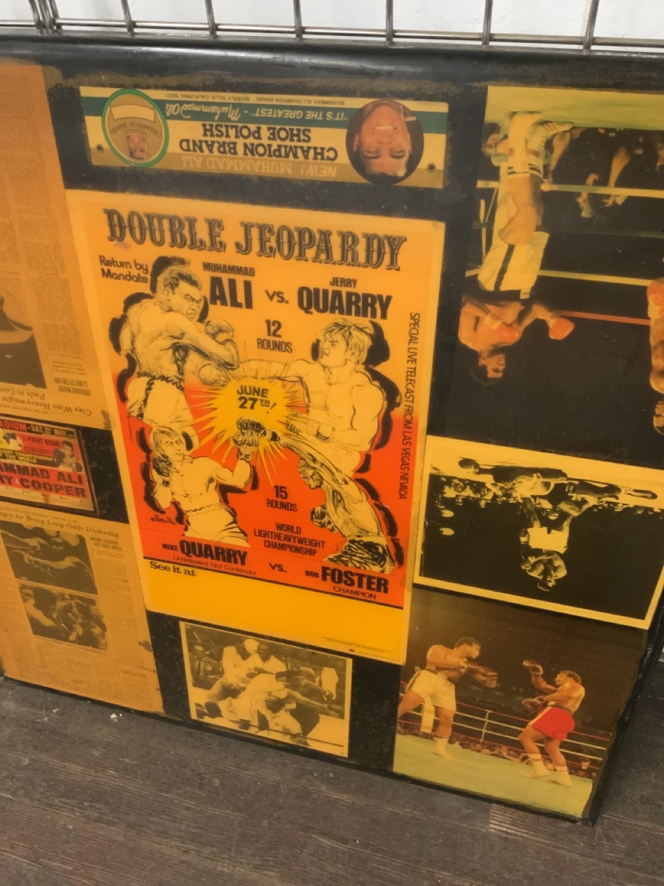 A New York City vintage sports bar table top. Boxing themed with Muhammad Ali.