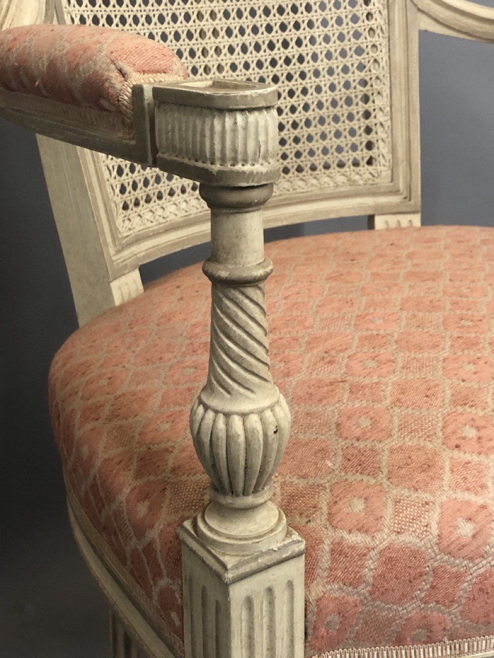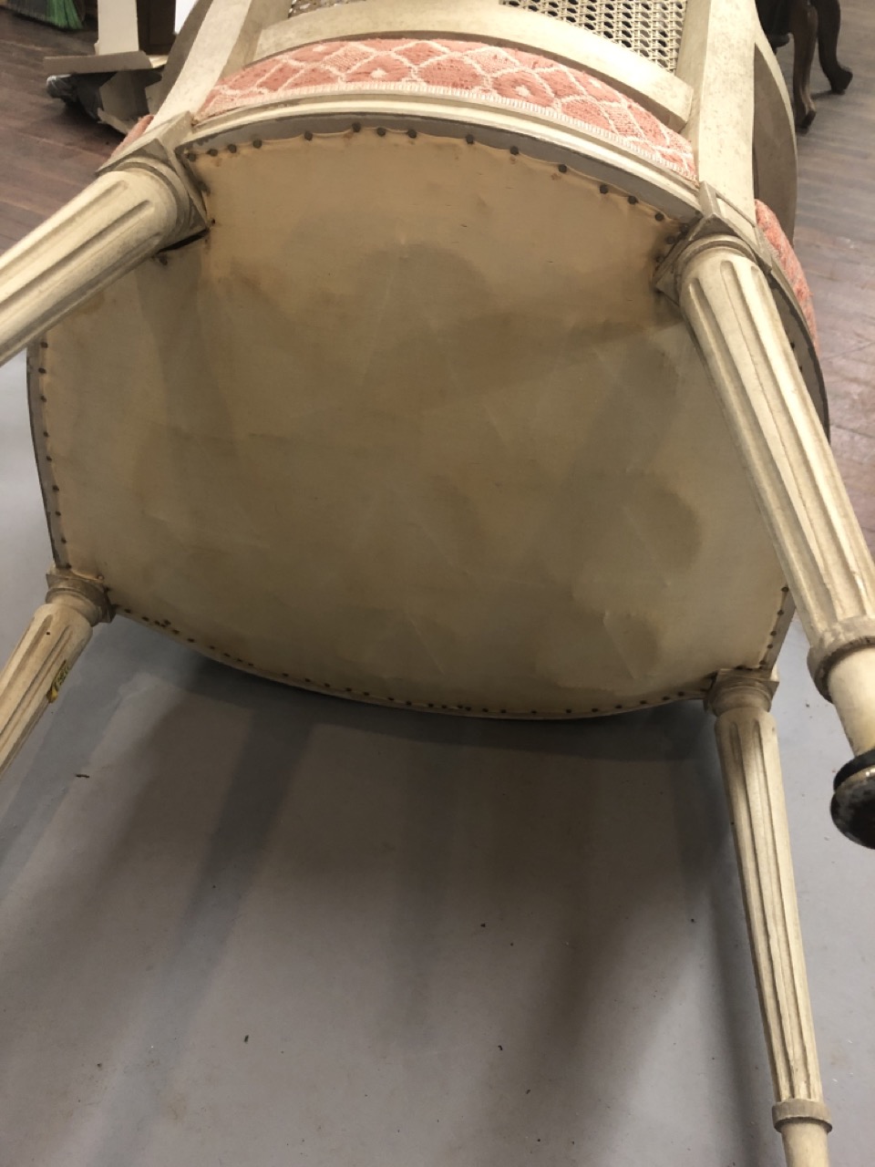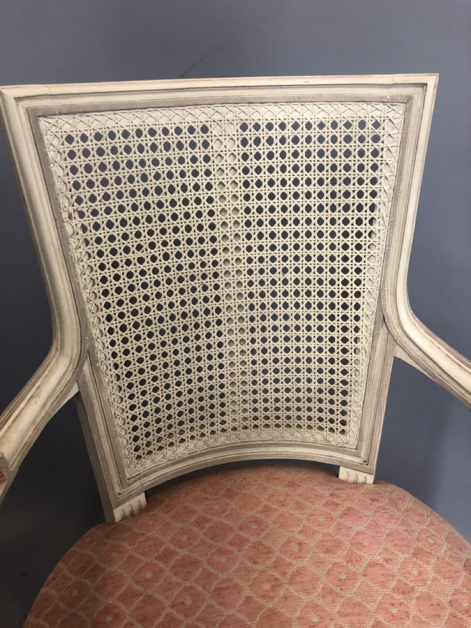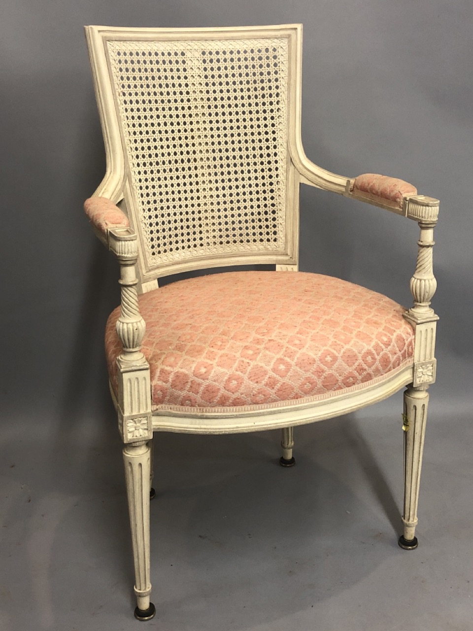 A nice "stand alone" white French Provincial arm chair with pink upholstery.