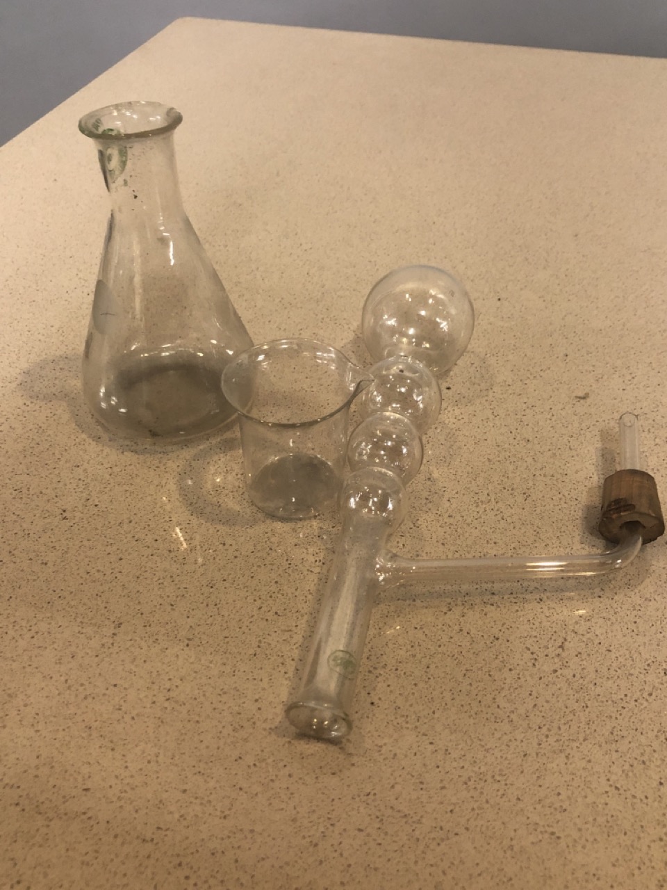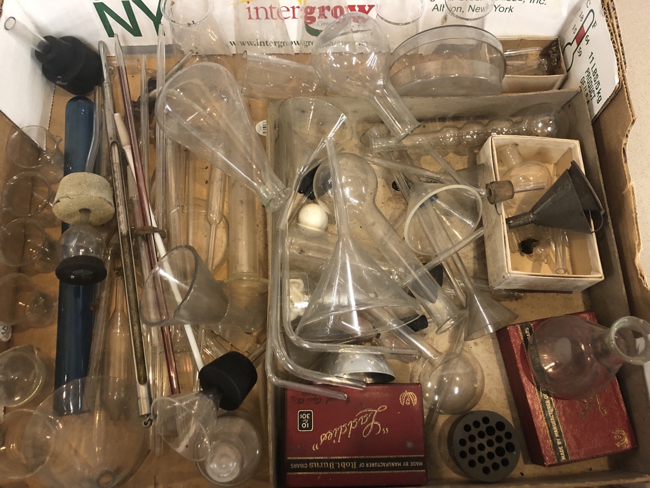 Various Science lab equipment including test tubes, thermometers, supplies etc.