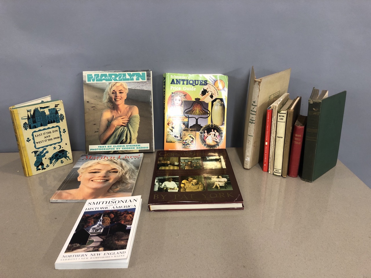 Book lot with Marilyn Monroe, Antique Guide,etc.