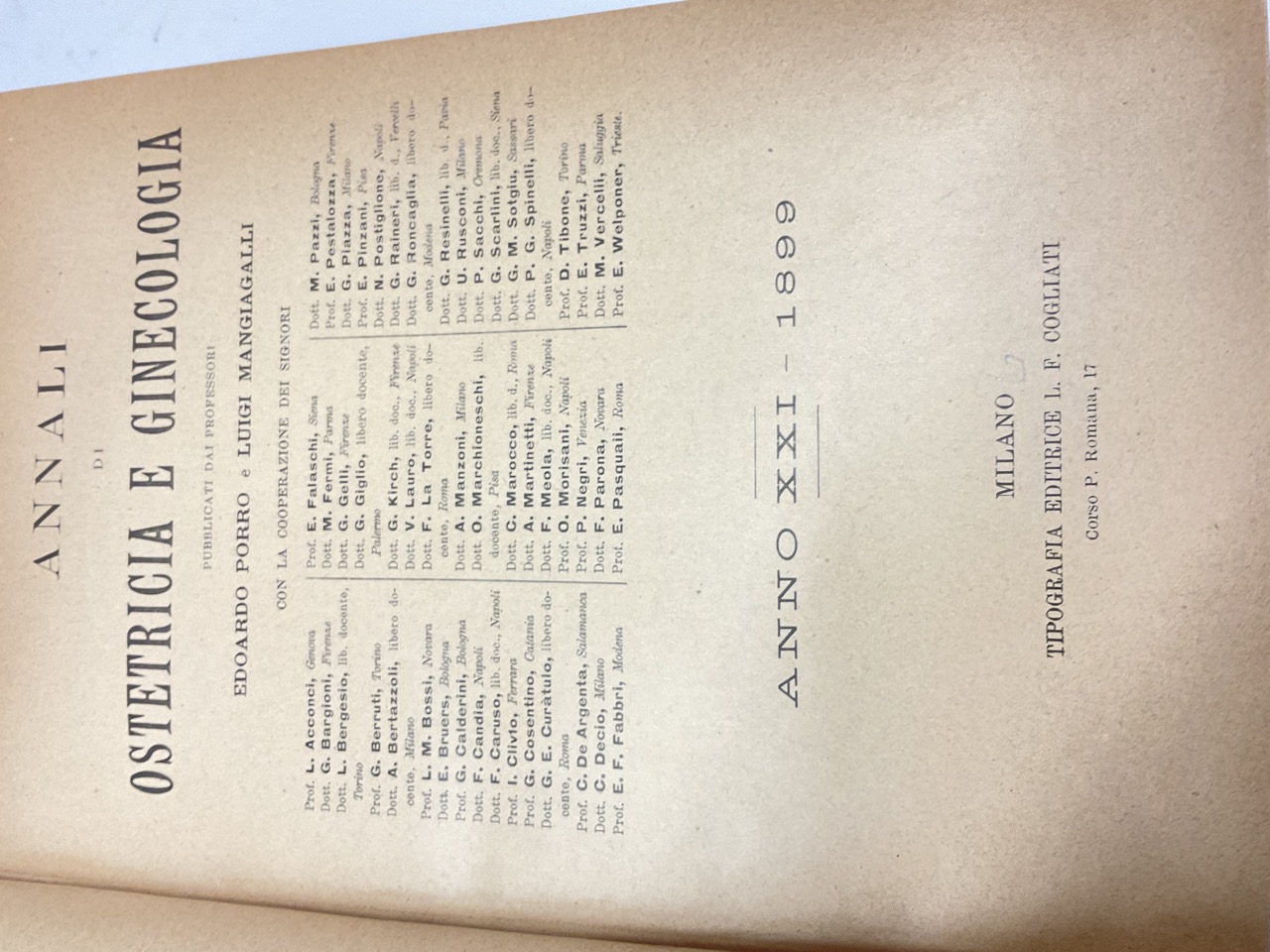 1899 Annalise di Ostetricia e Ginecologia