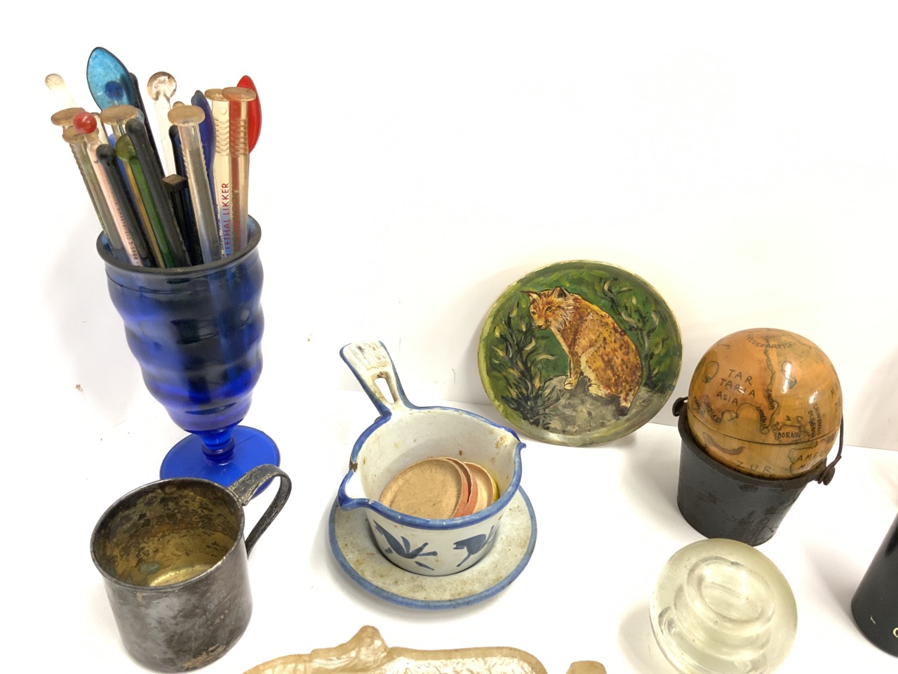 Wolf painting, chalice of pencils, kaliber 45 container