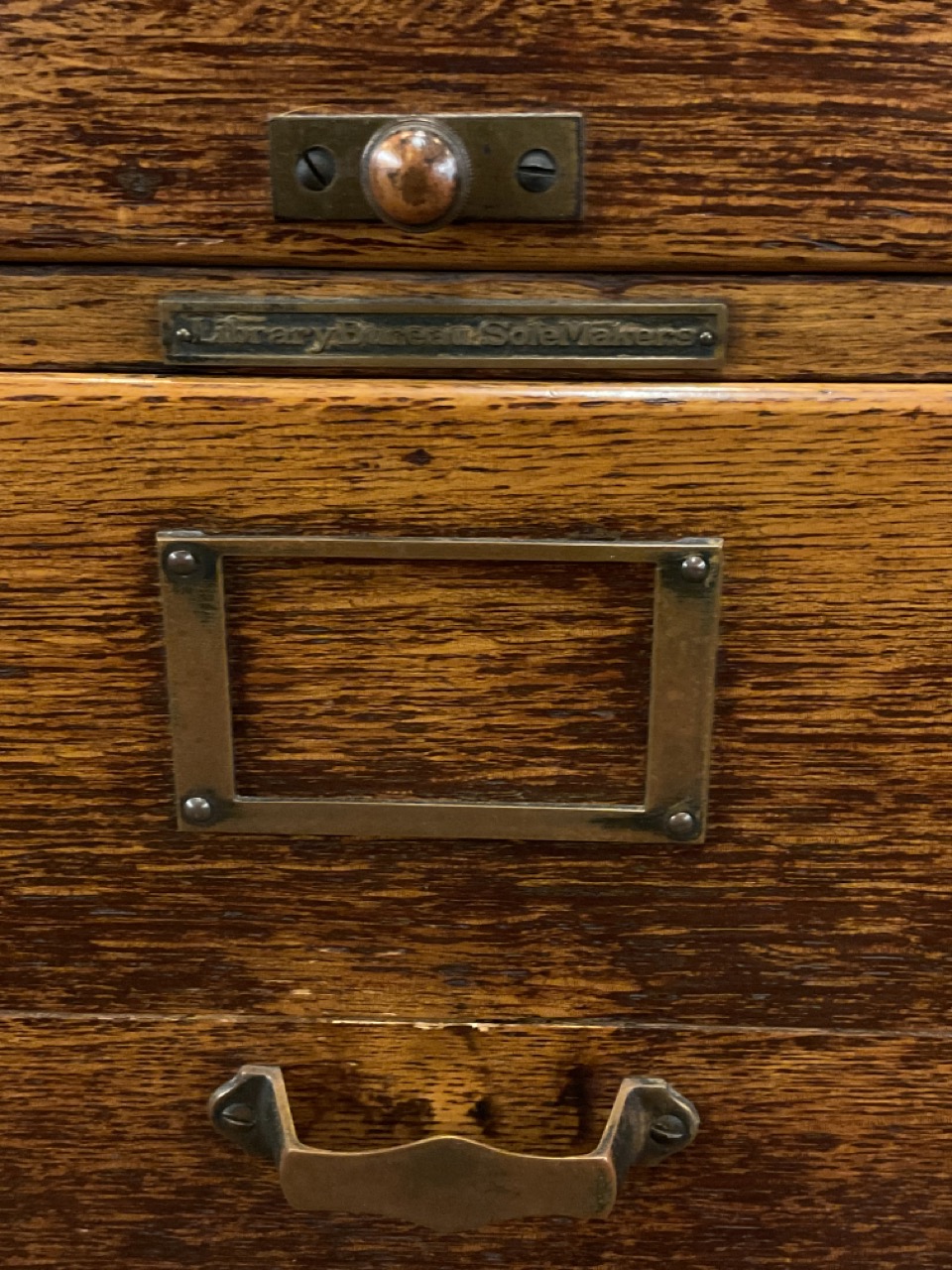 Library Bureau Sole Makers file cabinet with slant top and galley. The cabinet does not open from the top. Drawers only.