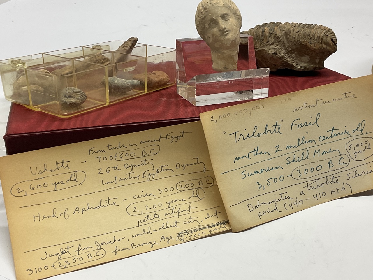 Collection of Fossils, Trilobite and head of Aphrodites. Estate find.