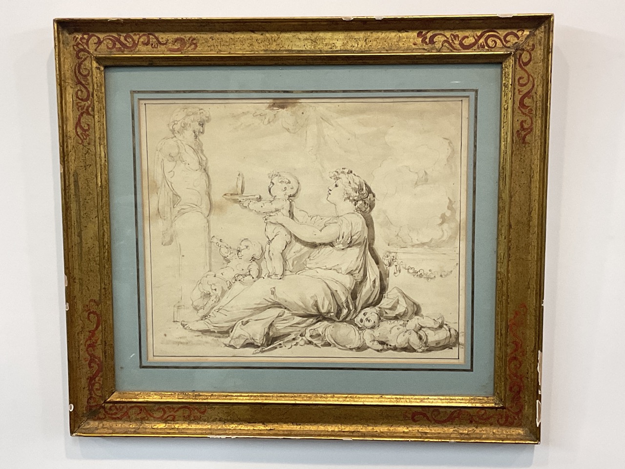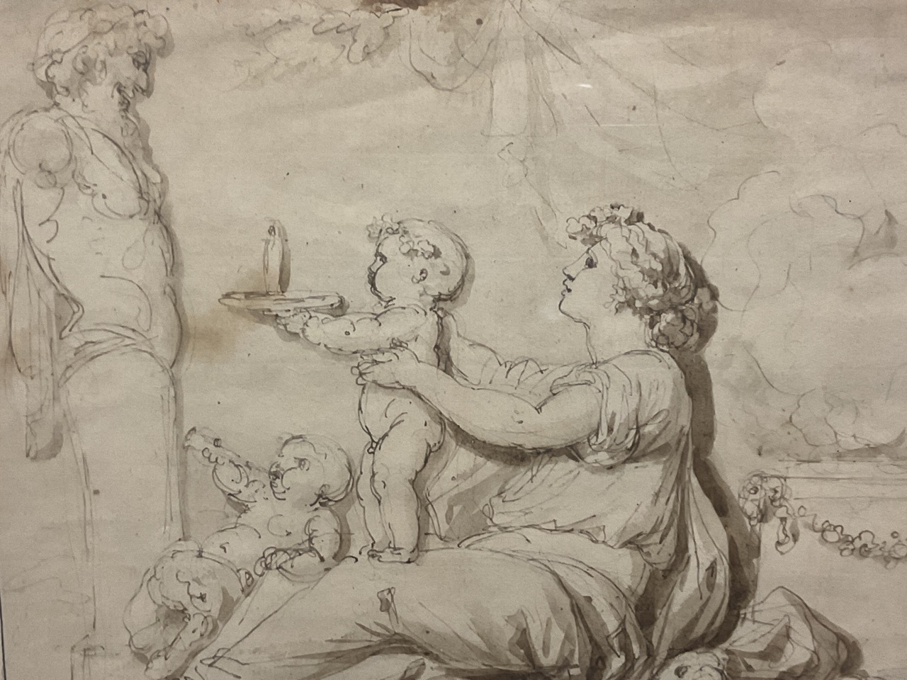 Ink wash and pencil on paper.
