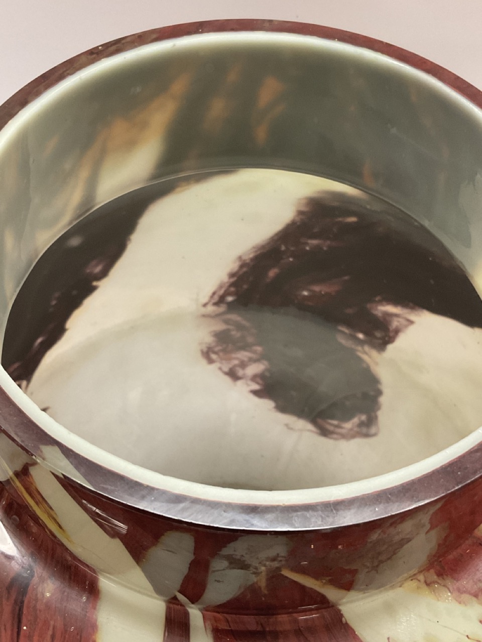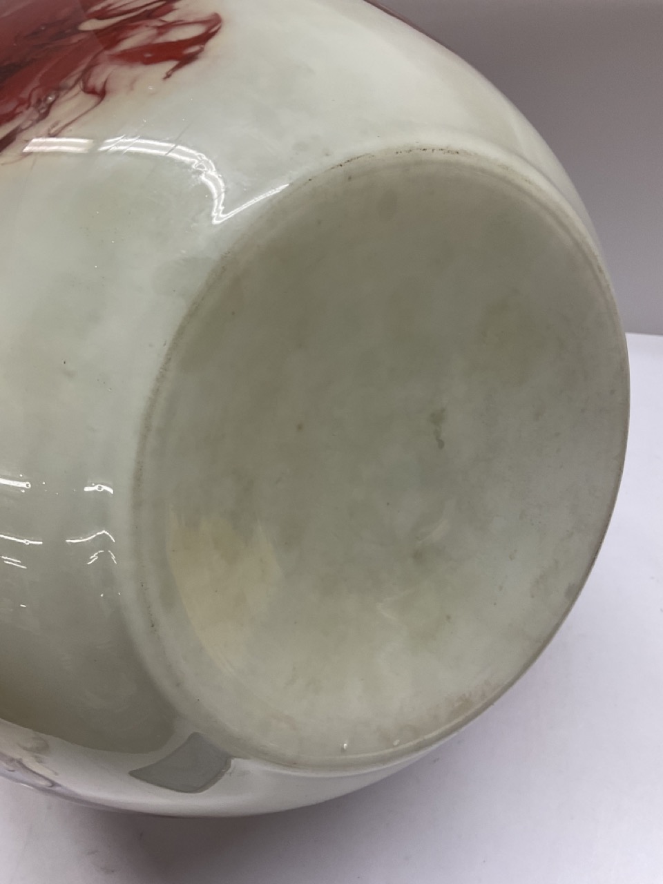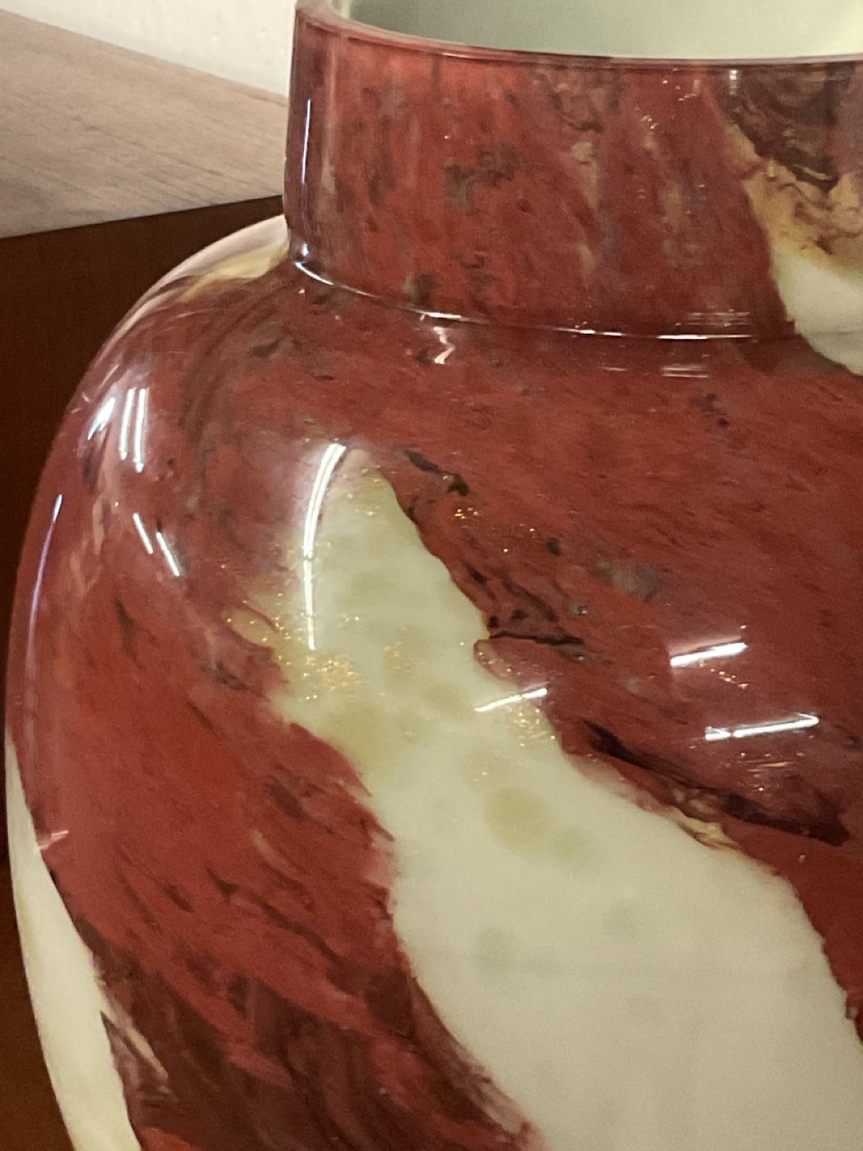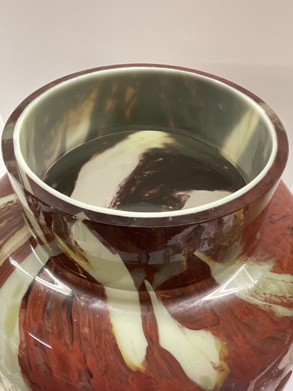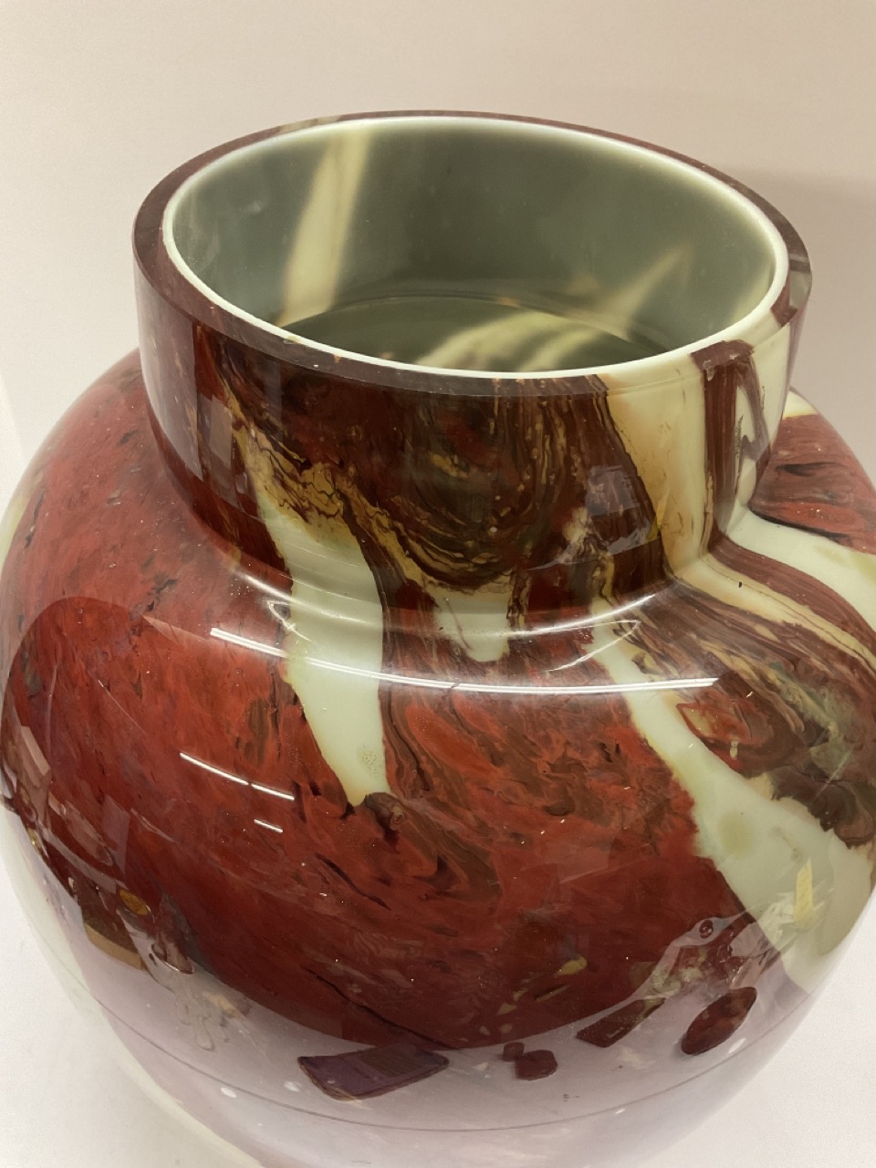 A vintage cased glass studio vase attributed to Monart, Scotland.