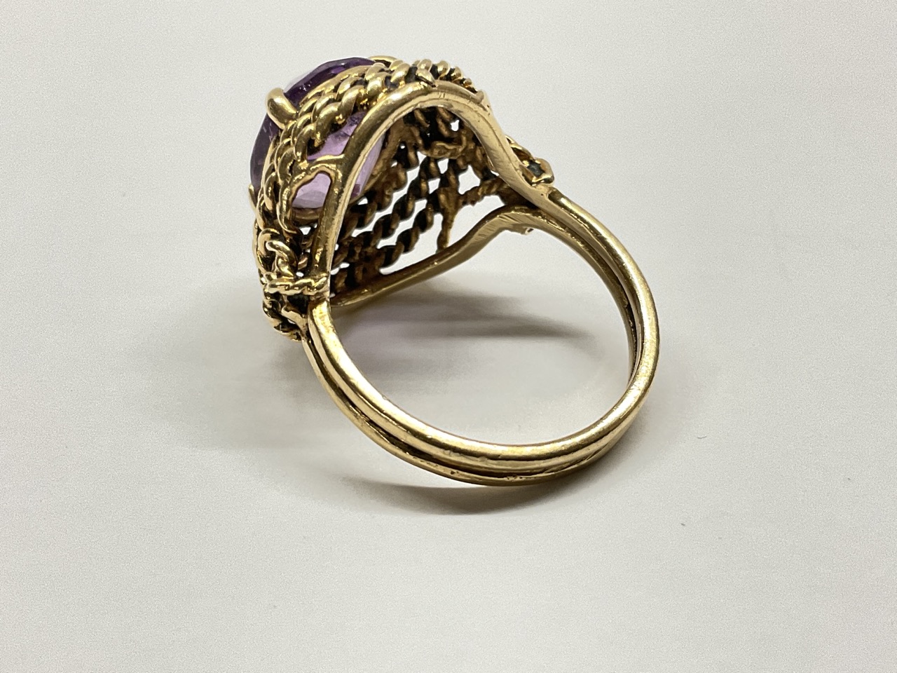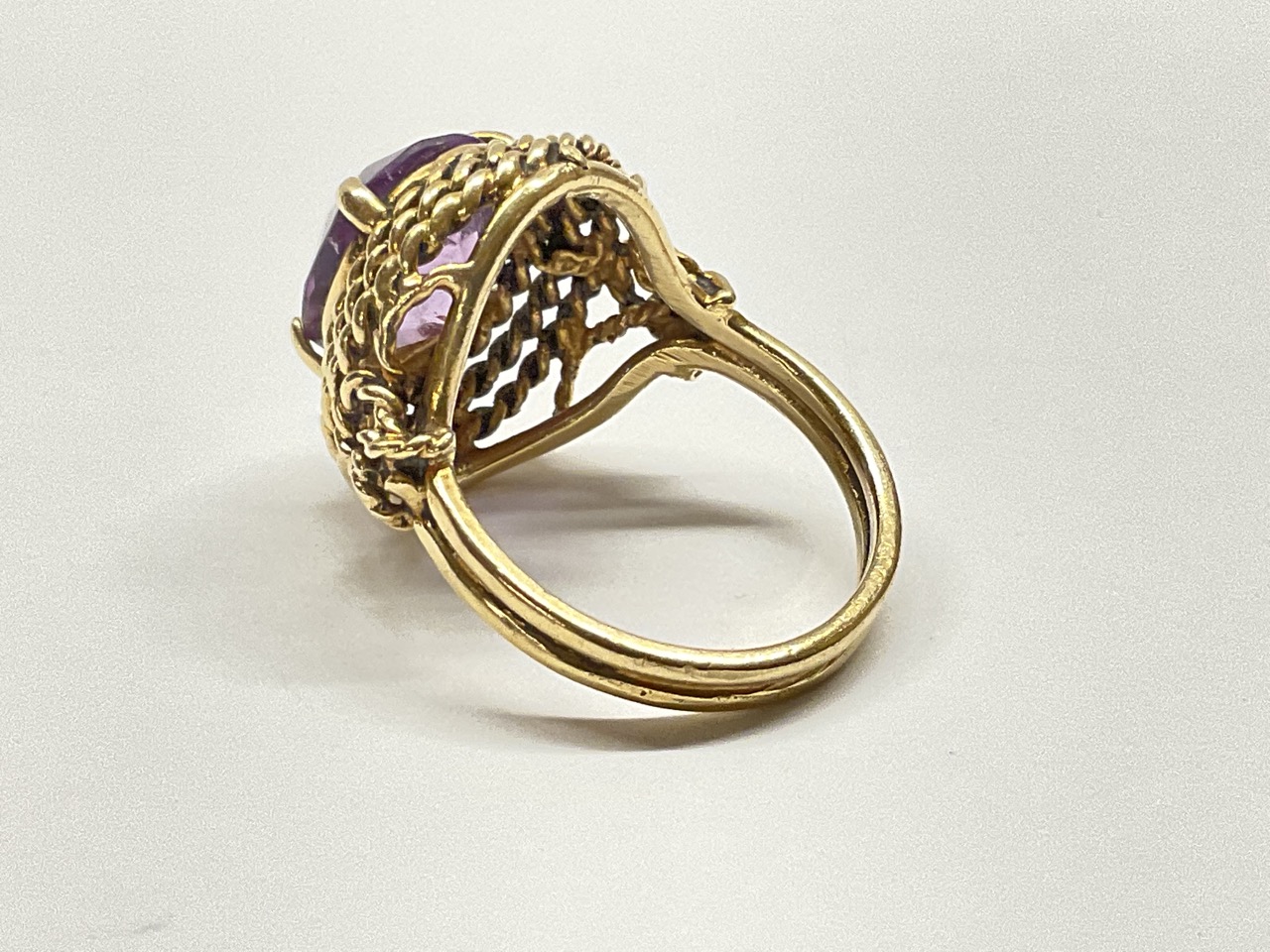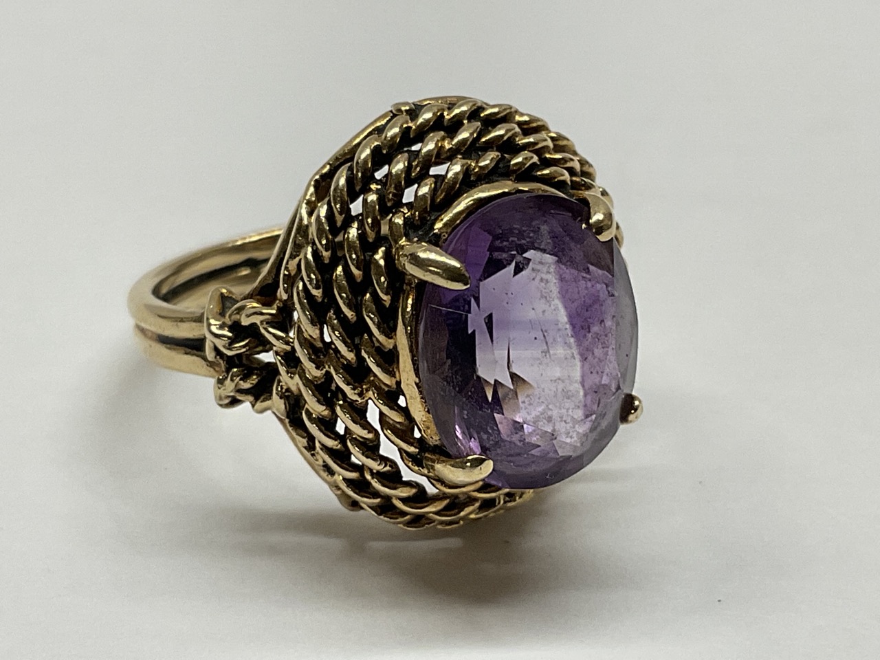 14k yellow gold amethyst ring.