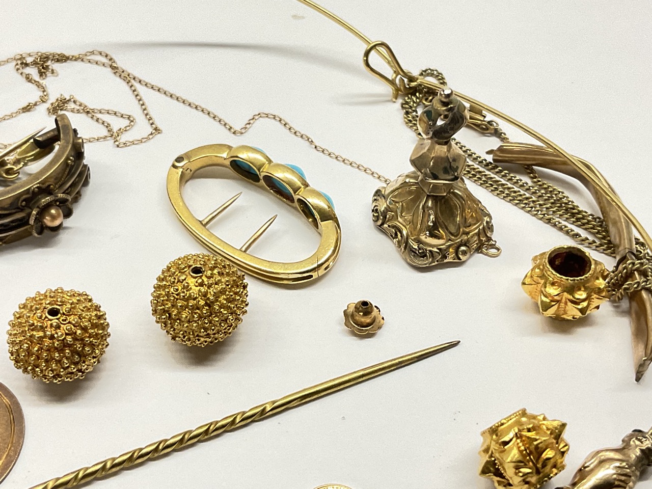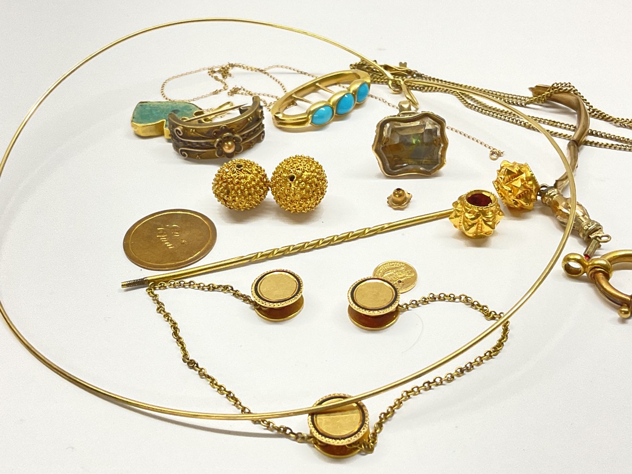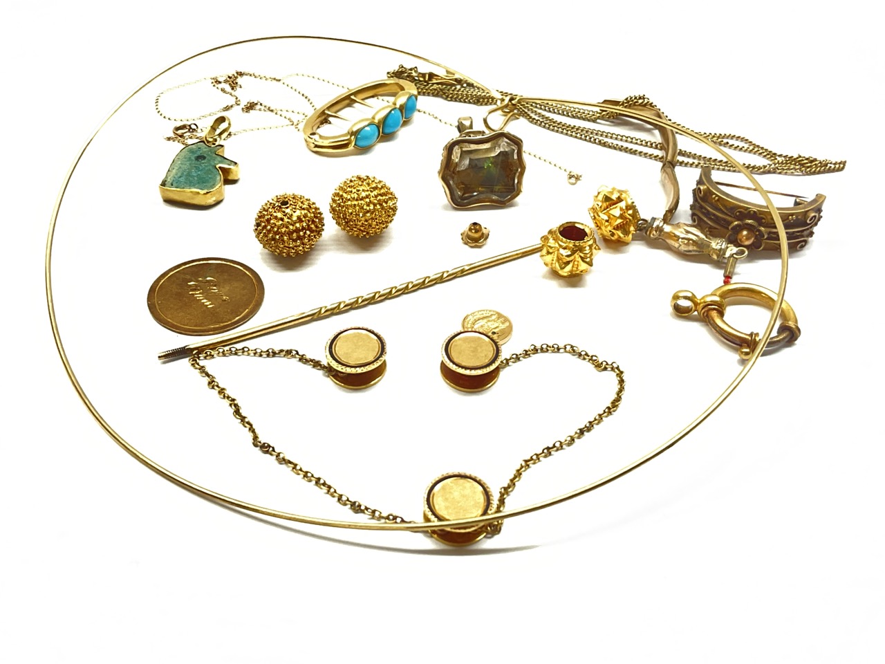 Estate compiled small jewelry 10k-18k gold and stones. Mostly scrap pieces.