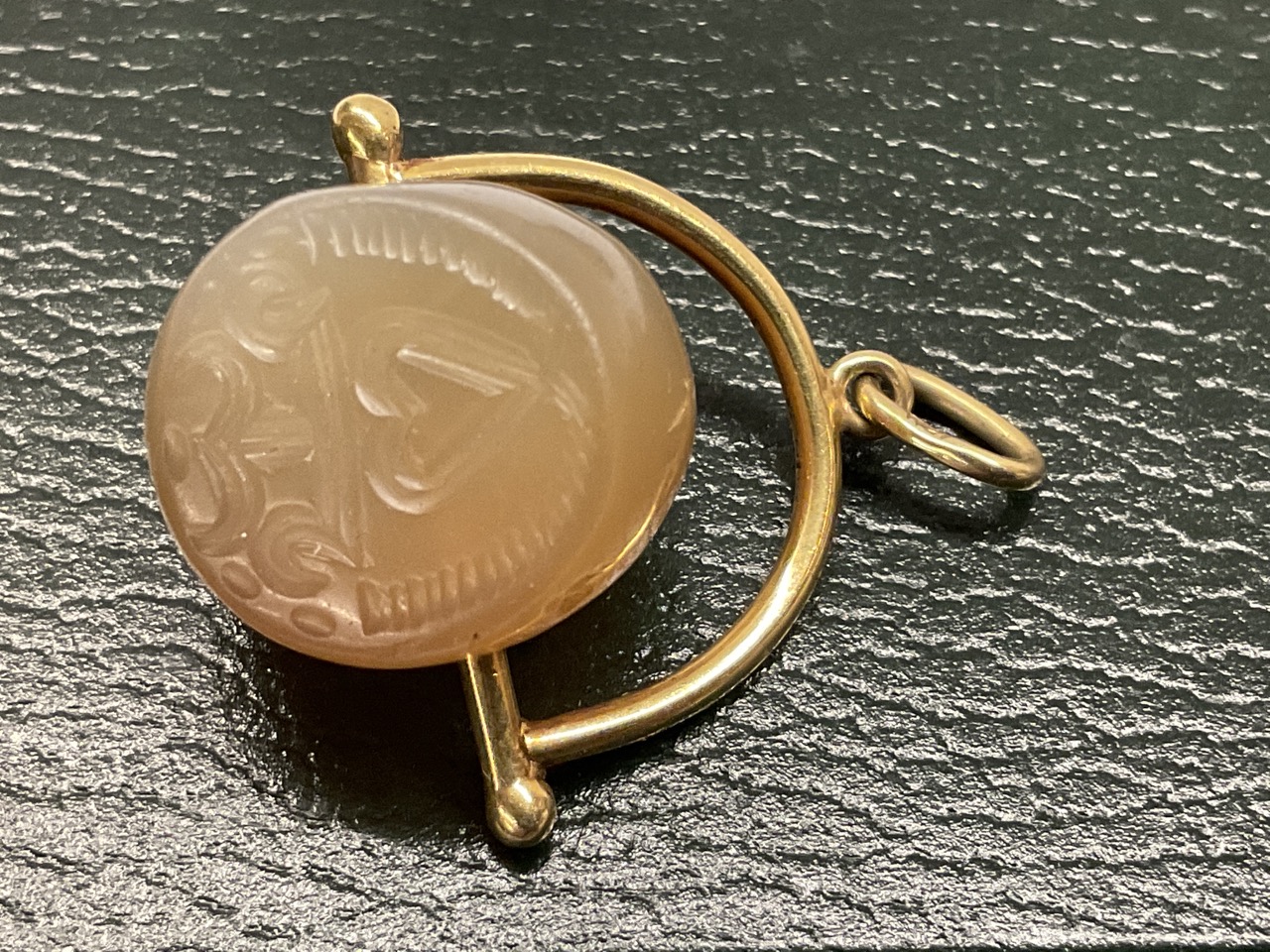 18k yellow gold Chinese jade wax seal.