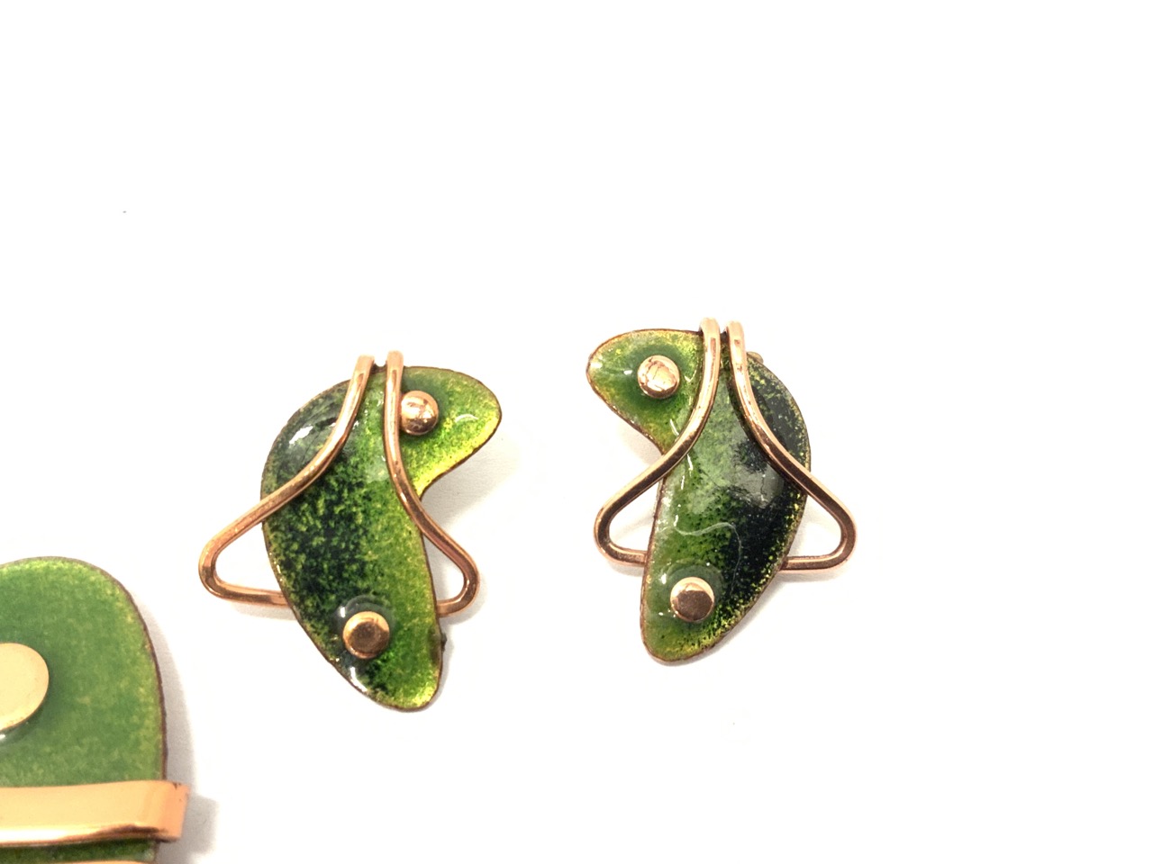 60's Matisse Green Brooch and Earrings Set