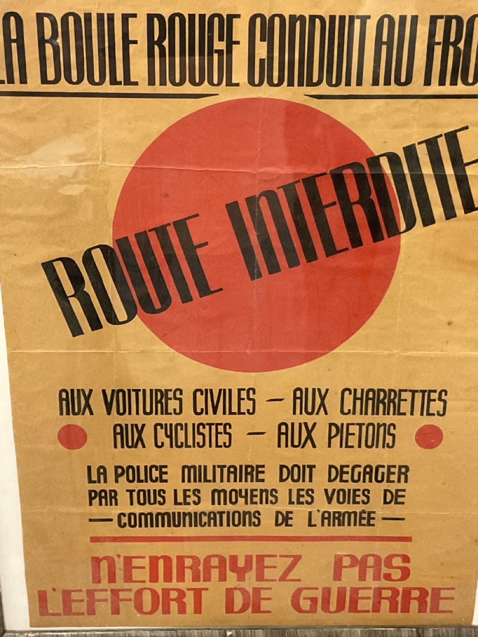 French WWII "RED DOT HIGHWAY" Original cardboard sign. Bring back from WWII.