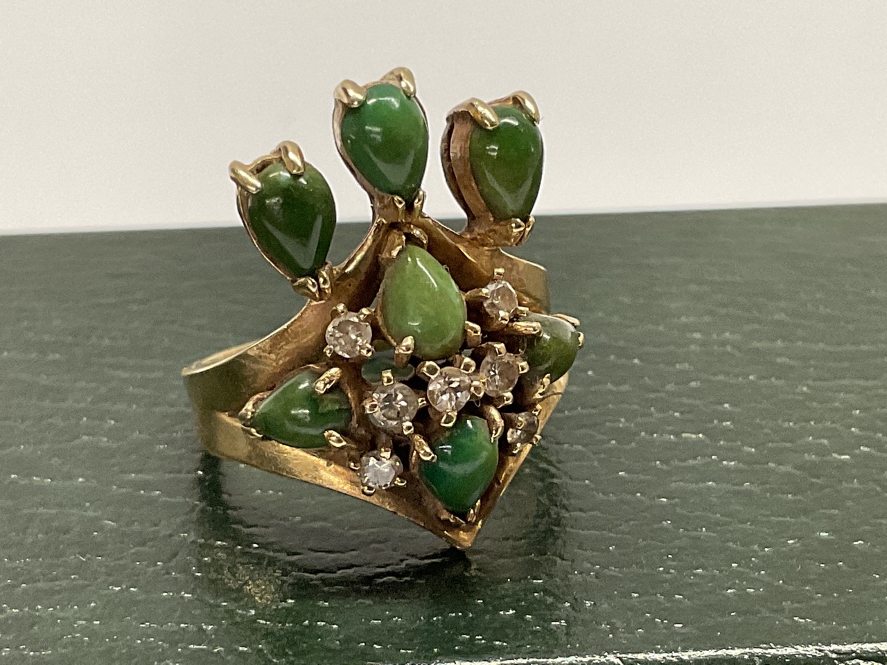 14K Diamond and Jade Cocktail Ring.