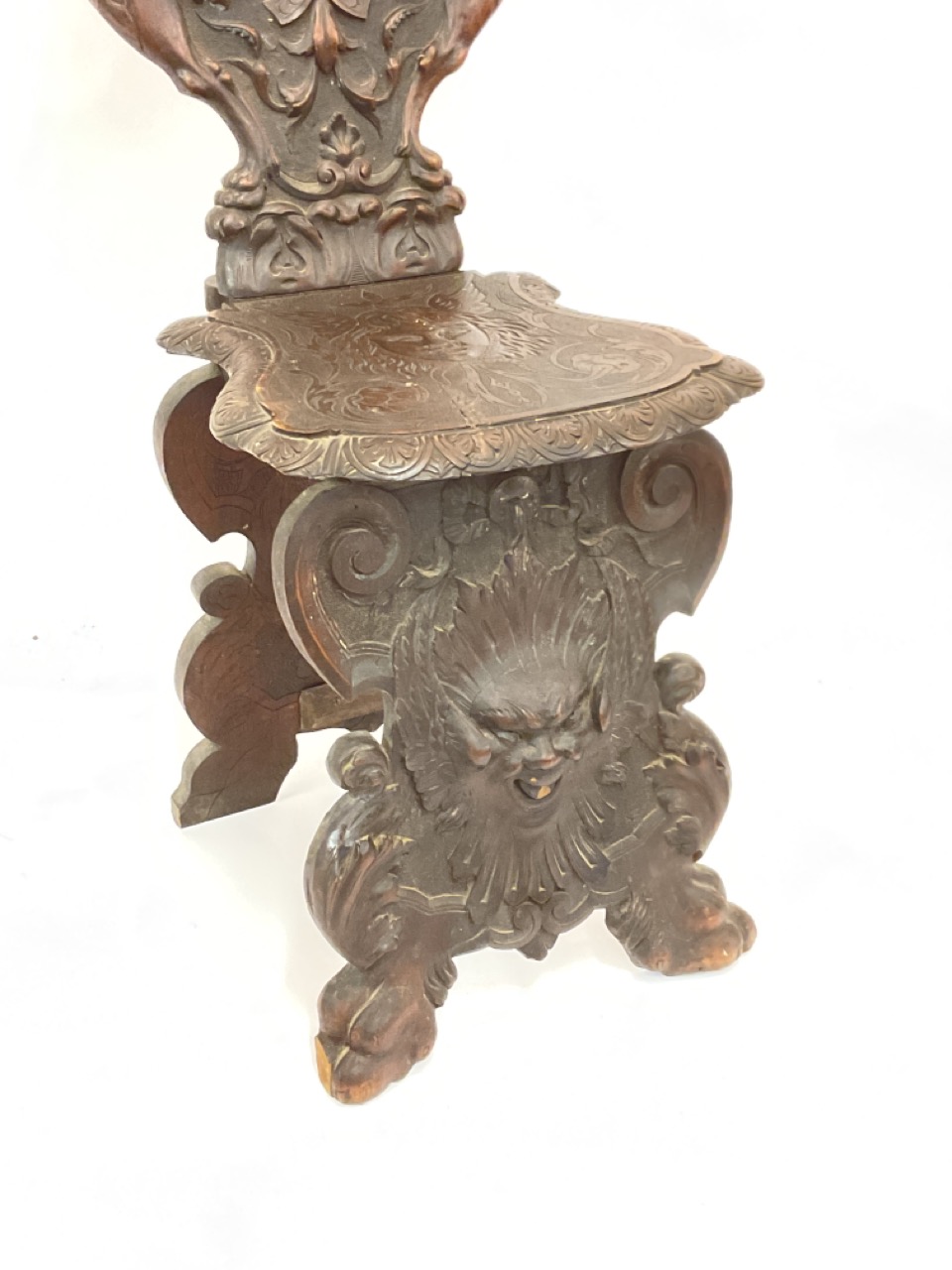 Sgabello carved chair, Italian, 19th century. Bears the Medici Family Coat Of Arms.