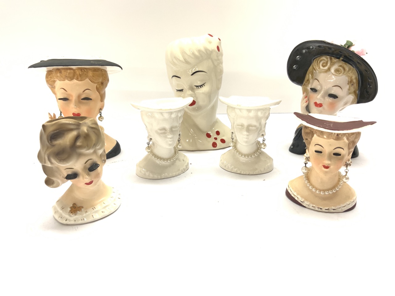 Seven (7) Porcelain head vases. As seen in photograph preview.
