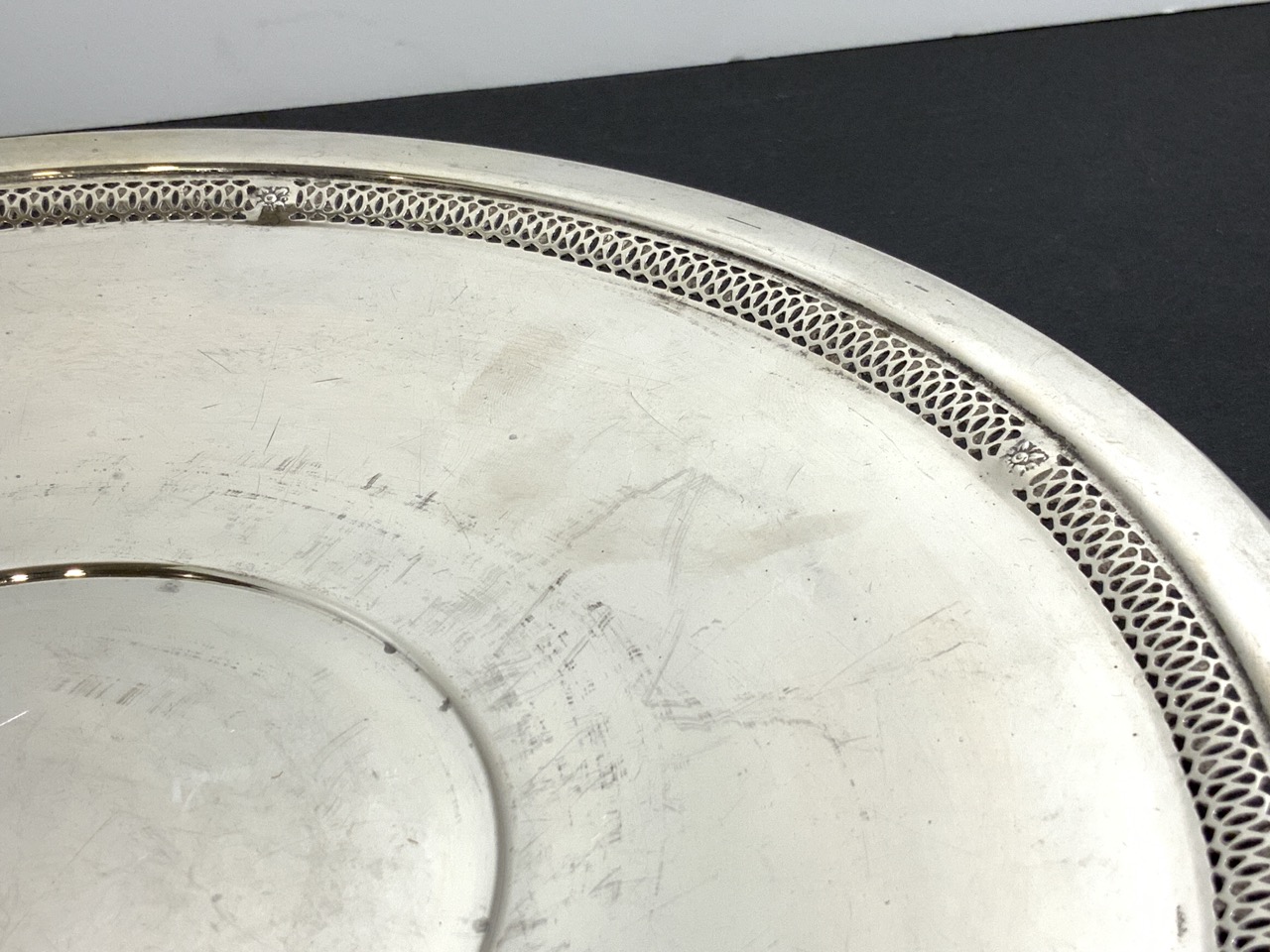 Sterling silver round tray.