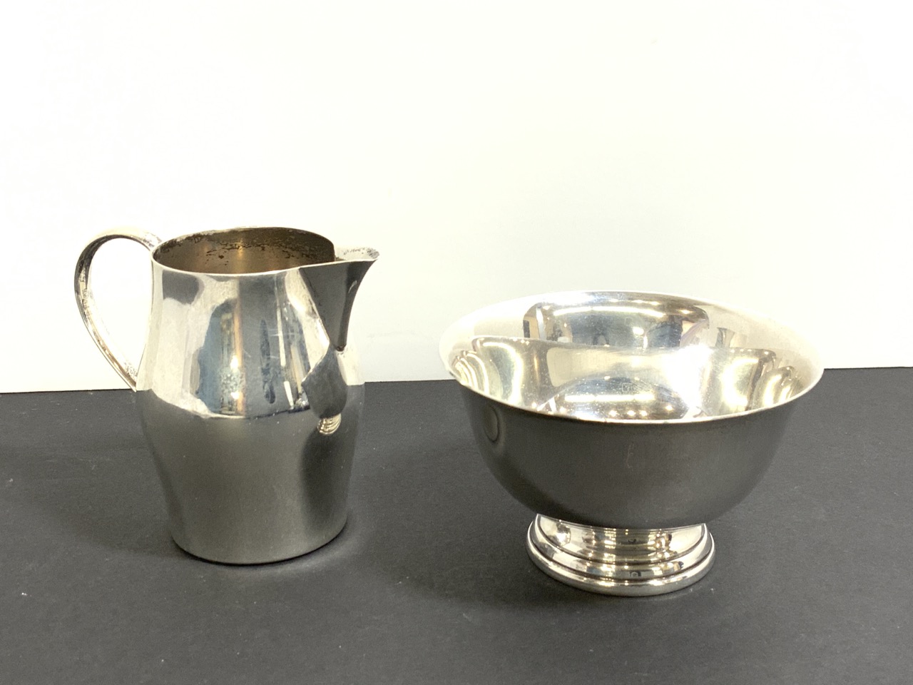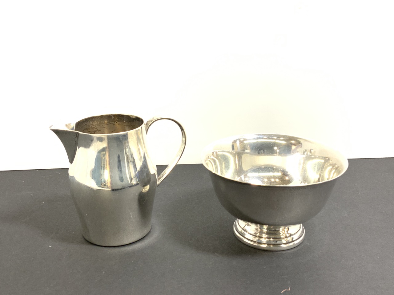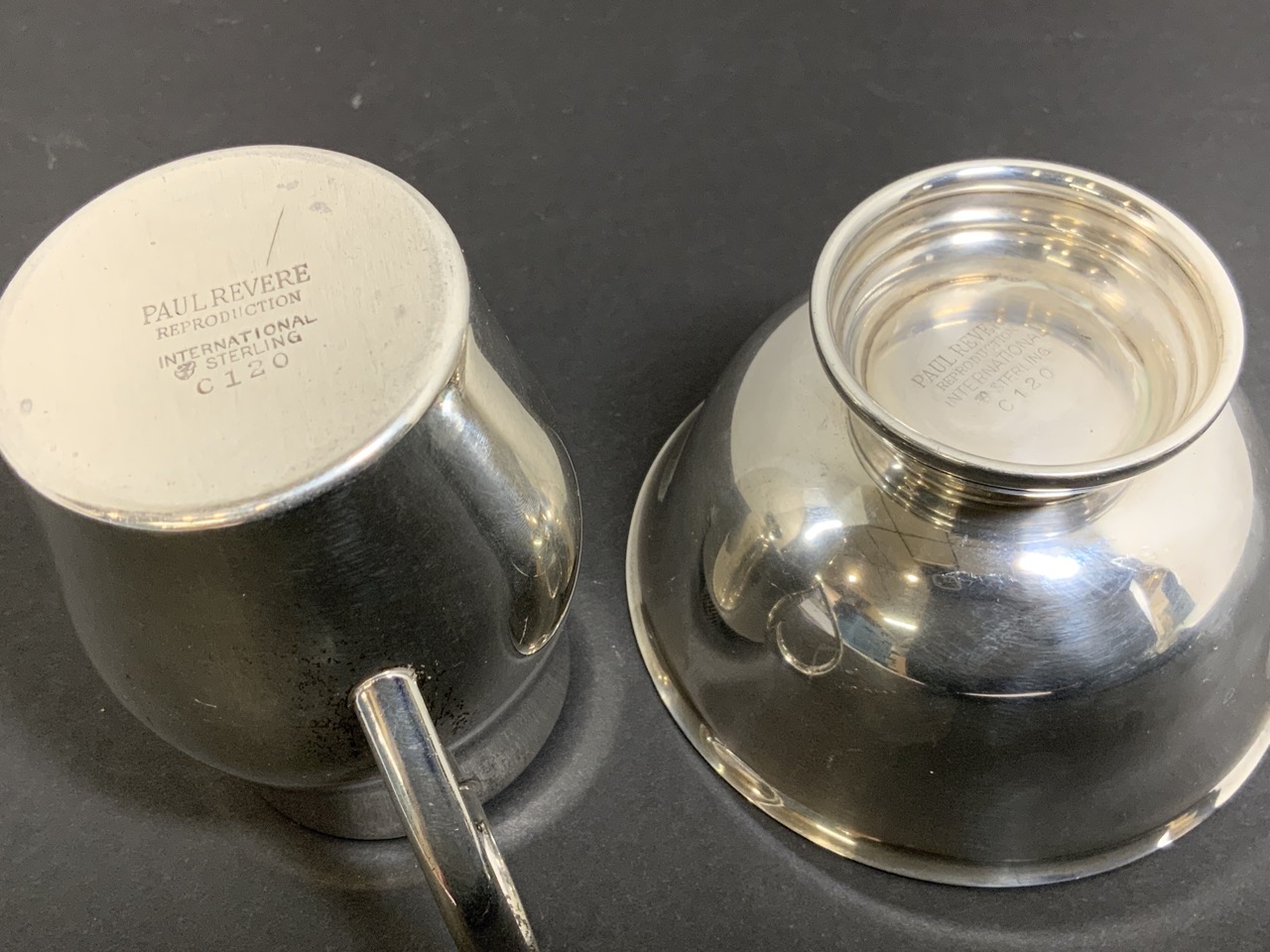 A fine Paul Revere Reproduction by International Silver Co. sugar bowl and creamer set.