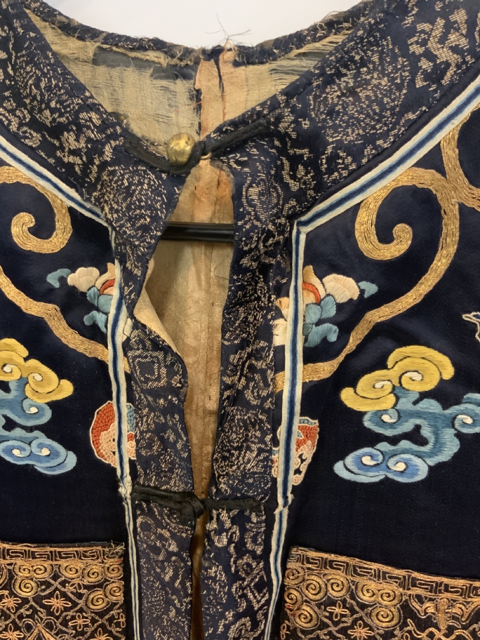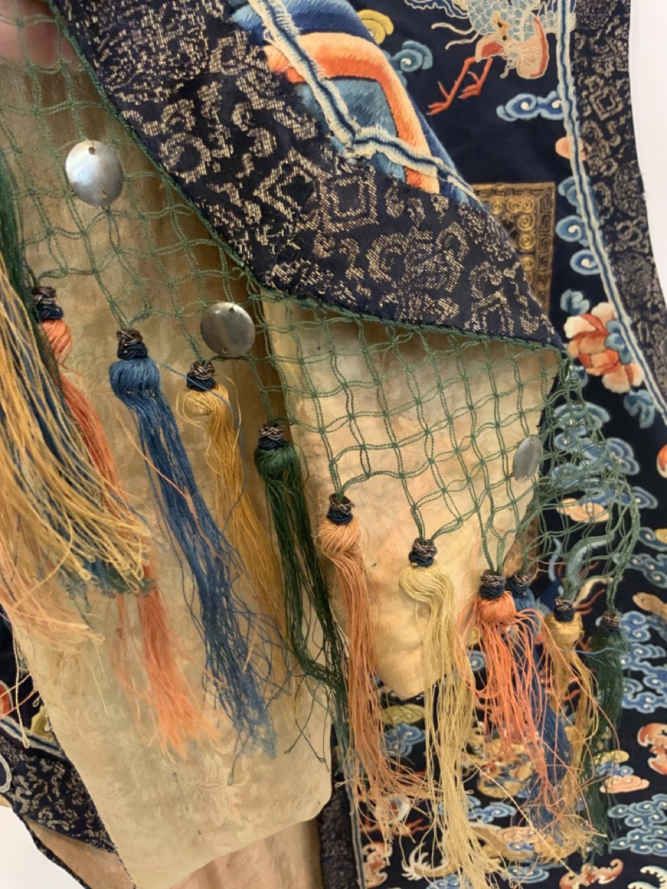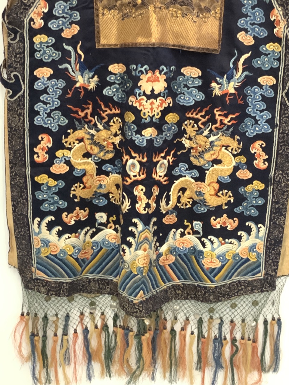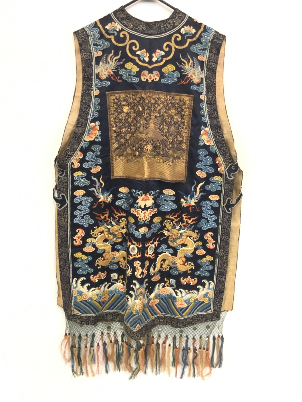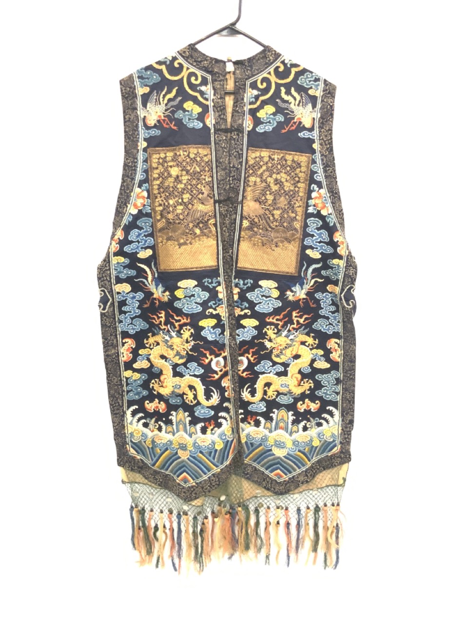An exceptional antique silk embroidered robe or Kimono. Sleeveless example.