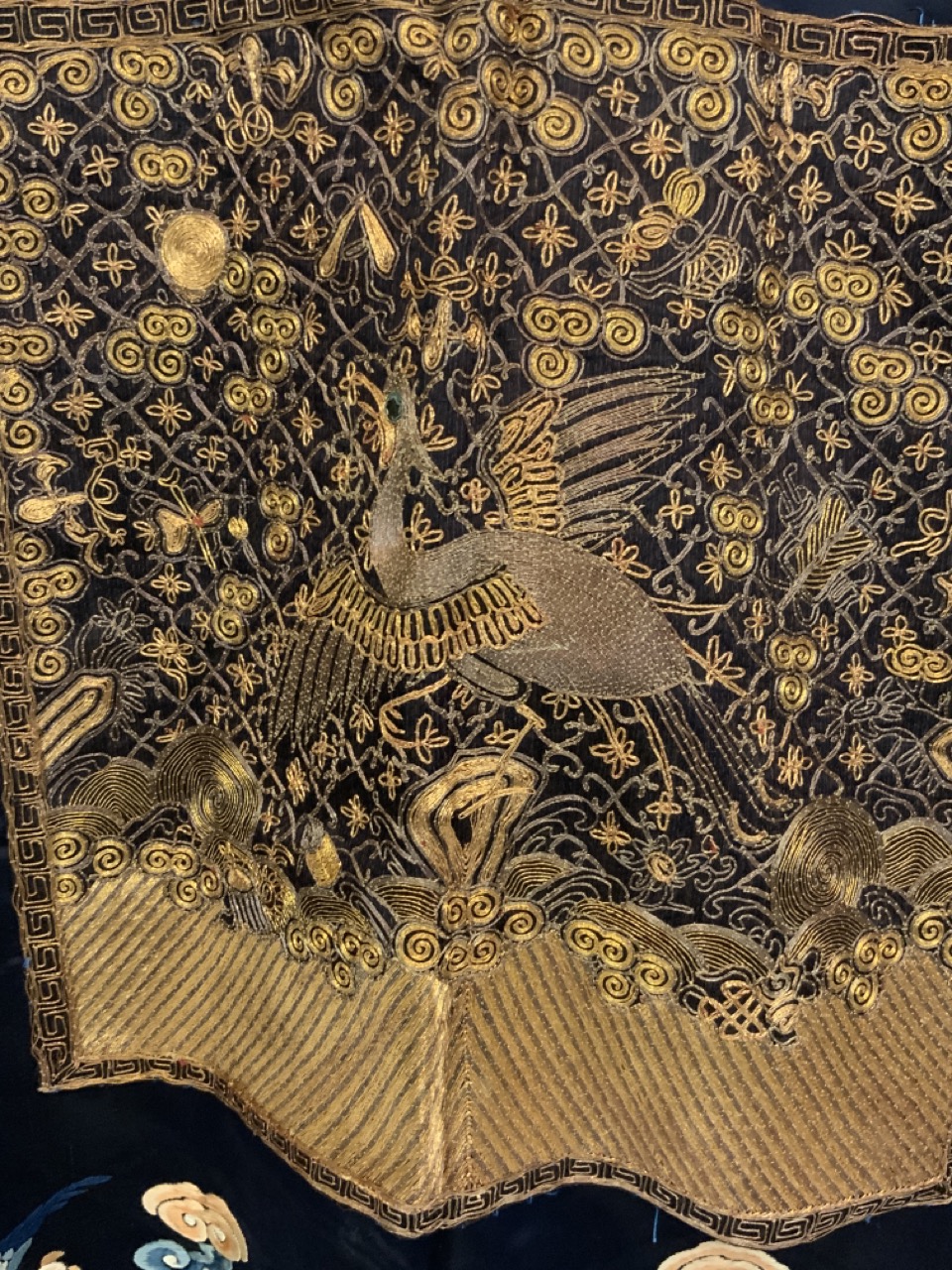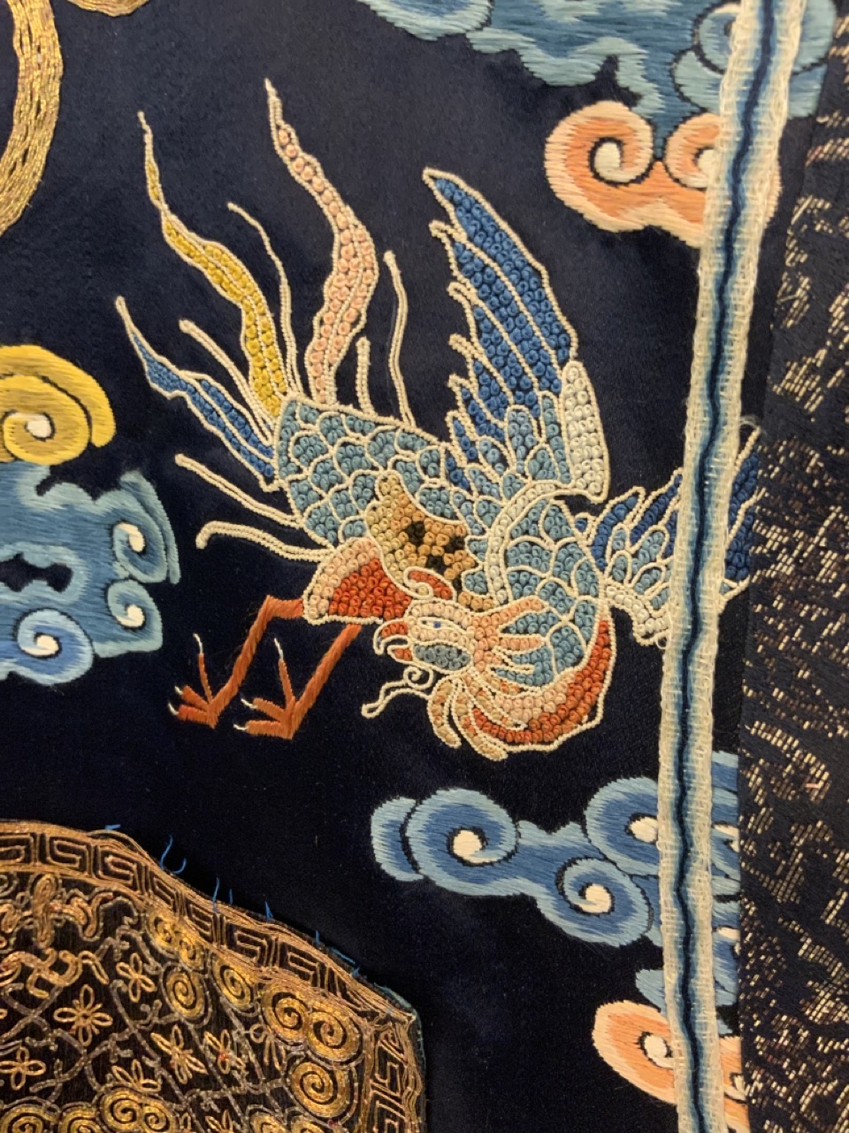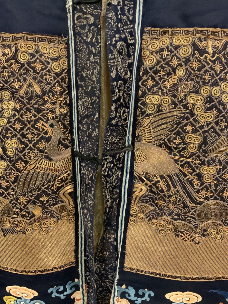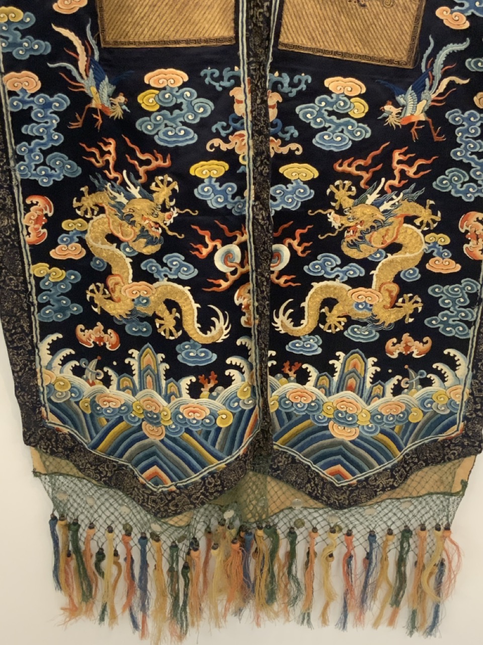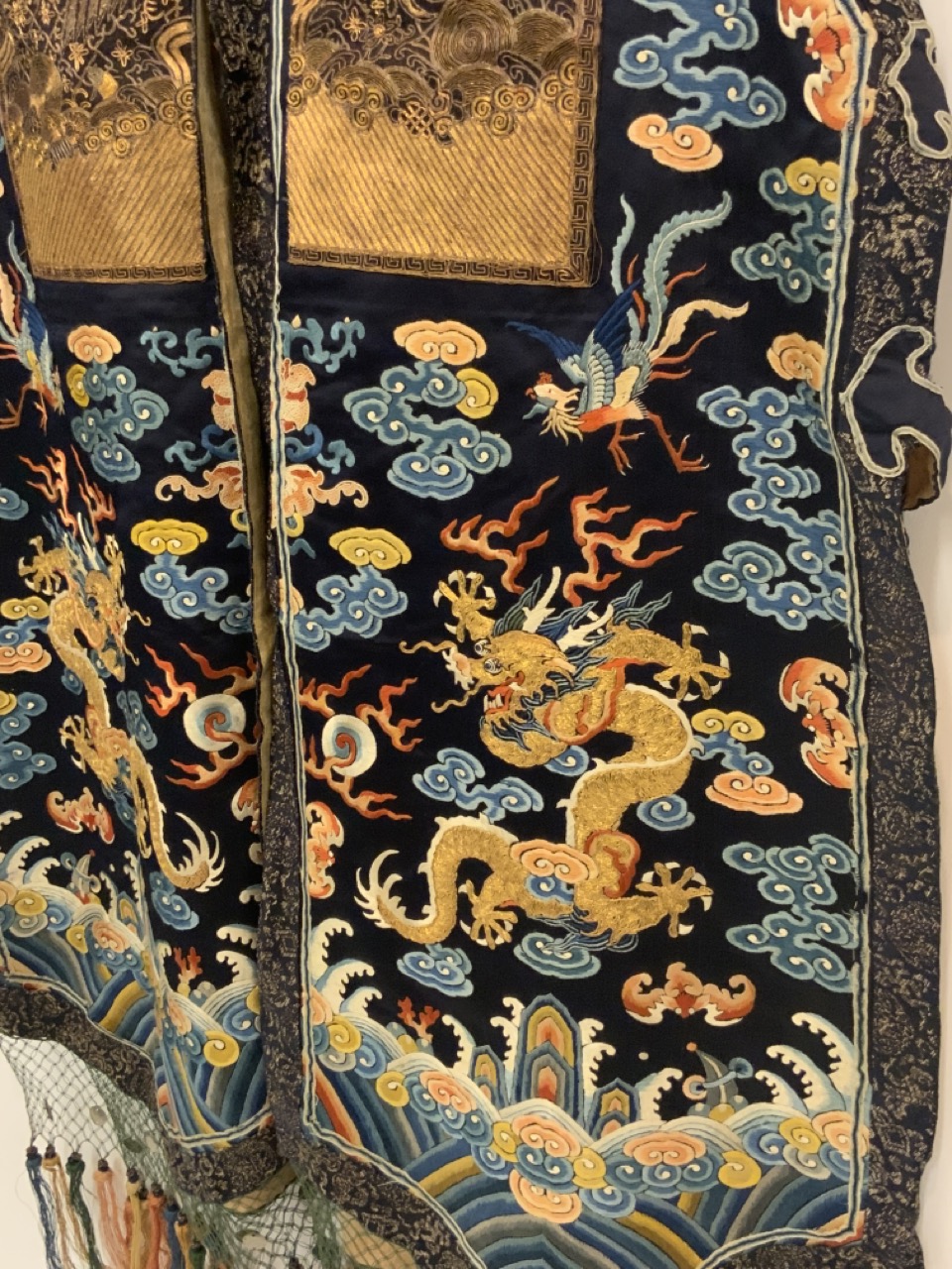 An exceptional antique silk embroidered robe or Kimono. Sleeveless example.