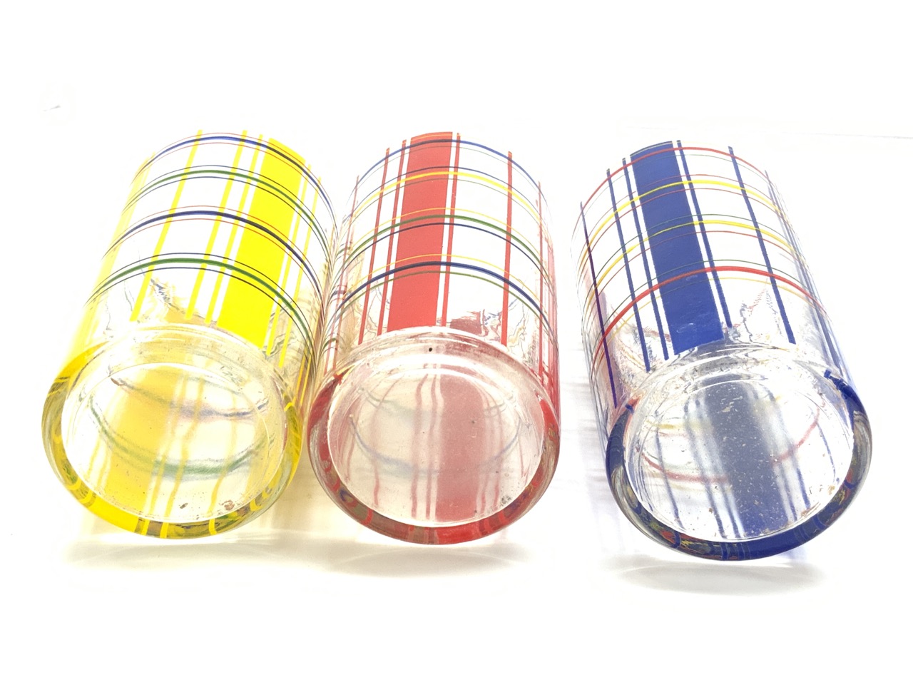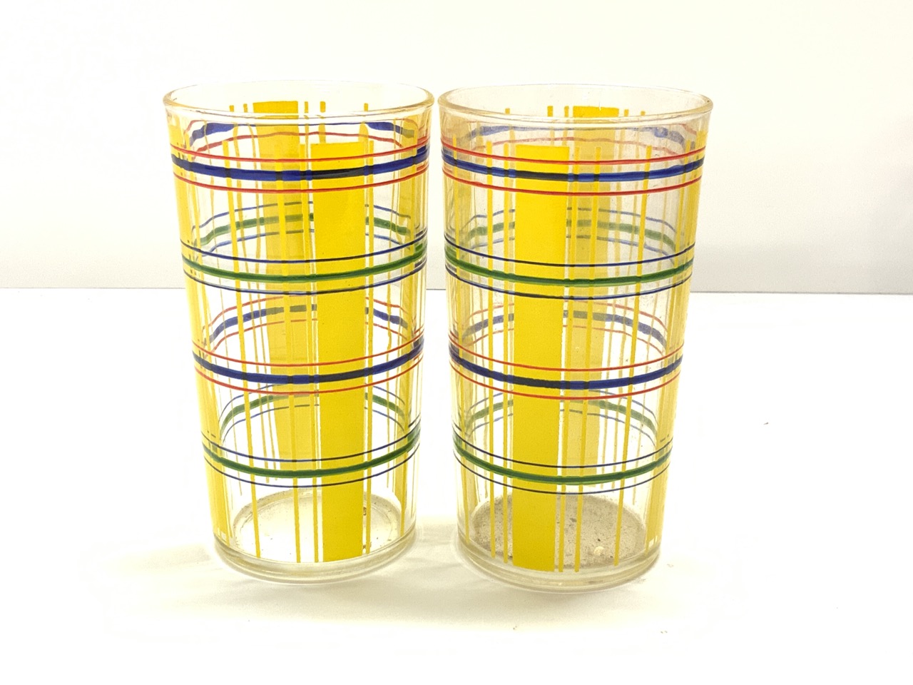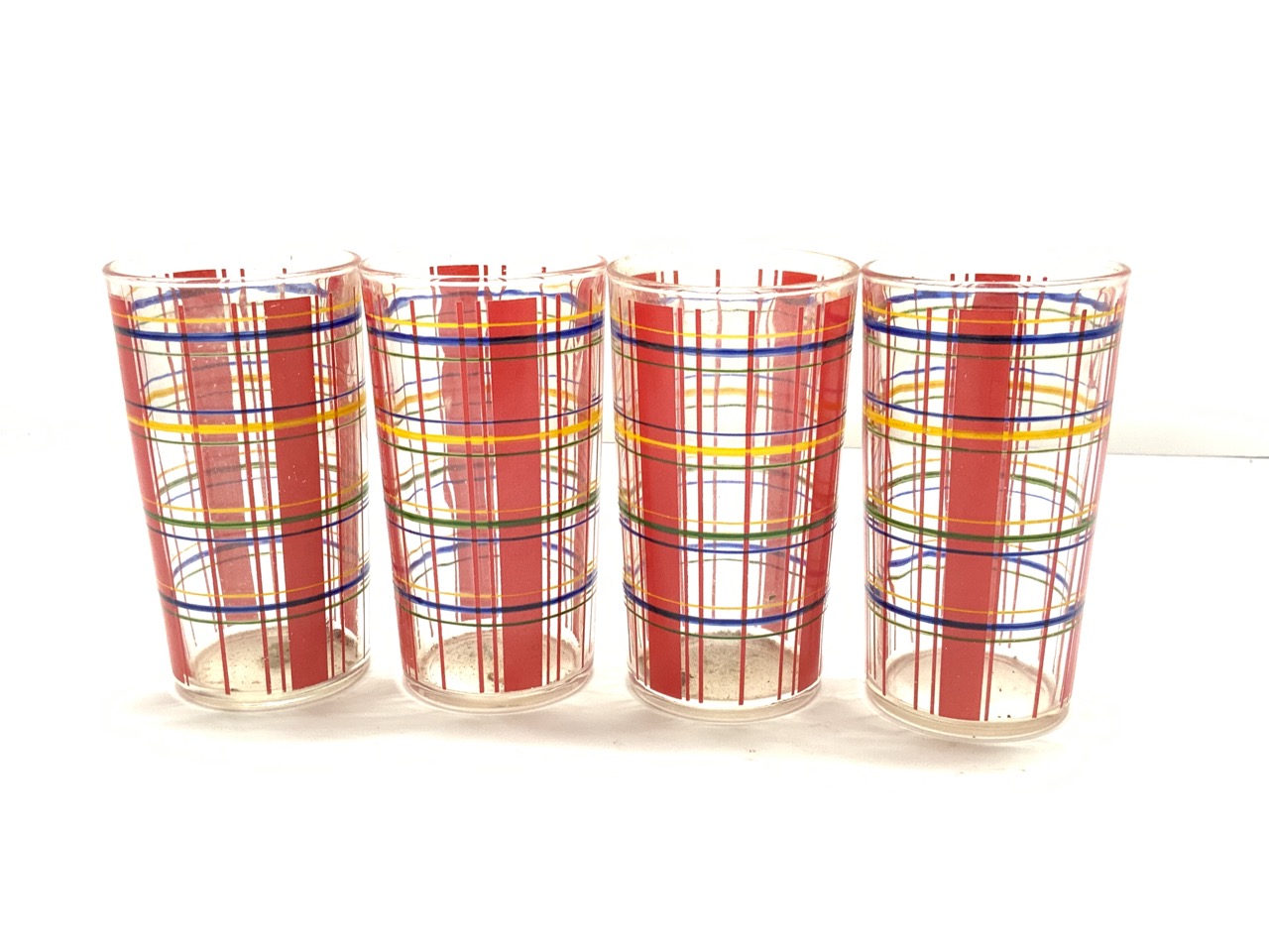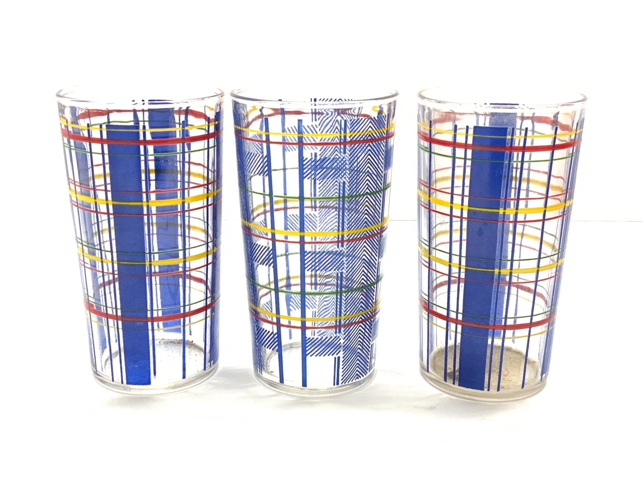 Nine (9) Vintage Plaid Drinkware Glasses