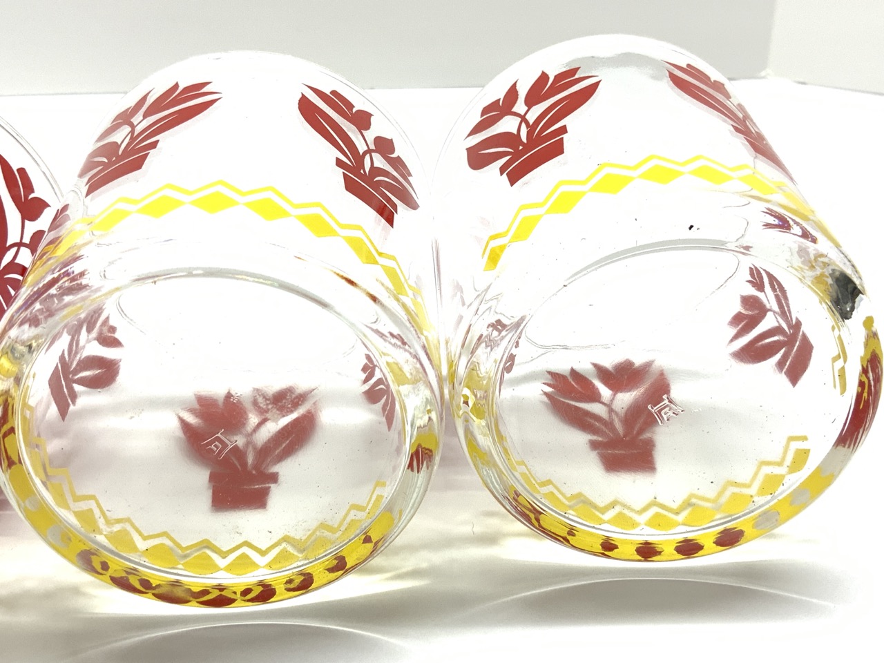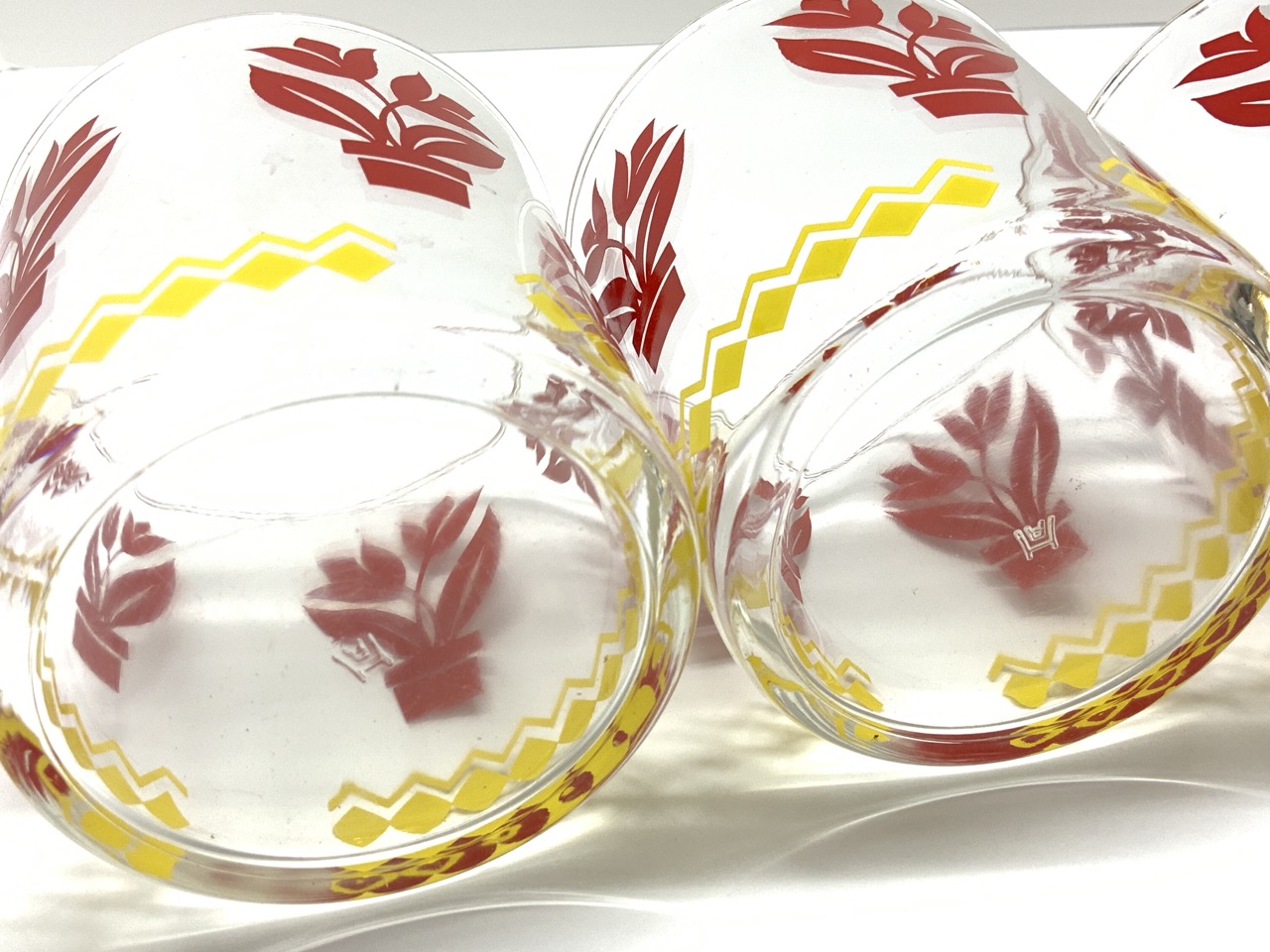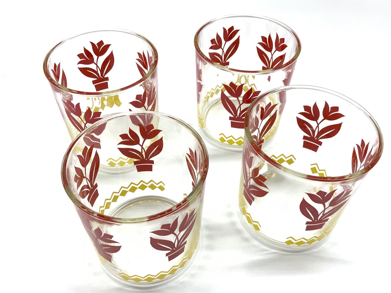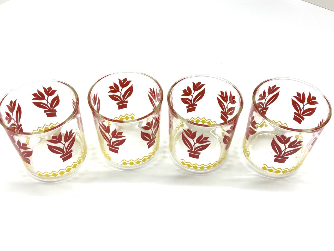Set of four Retro kitchen red beaker style cups.